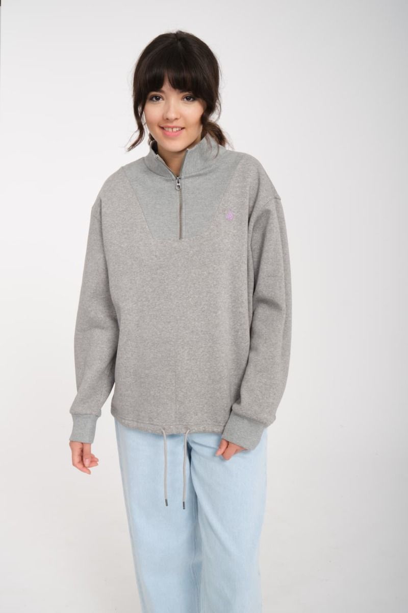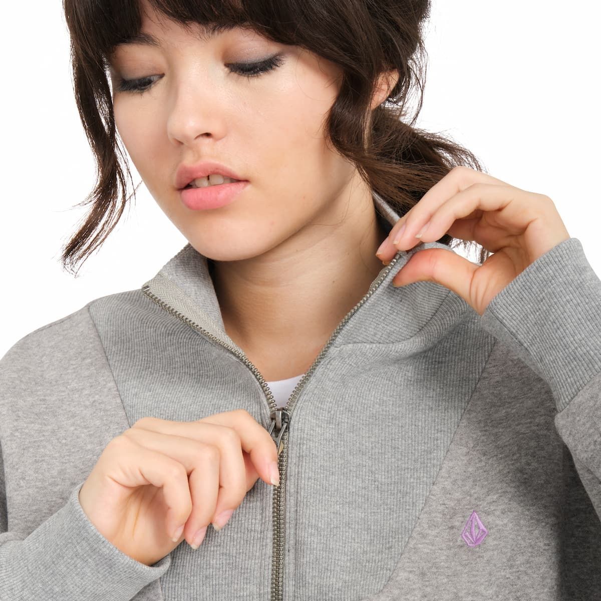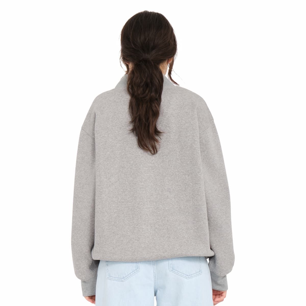 La sudadera con media cremallera para mujer Mocker Nucker en gris (Heather Grey) de Volcom está confeccionada con tejido suave en mezcla de 70% algodón y 30% poliéster (280g).