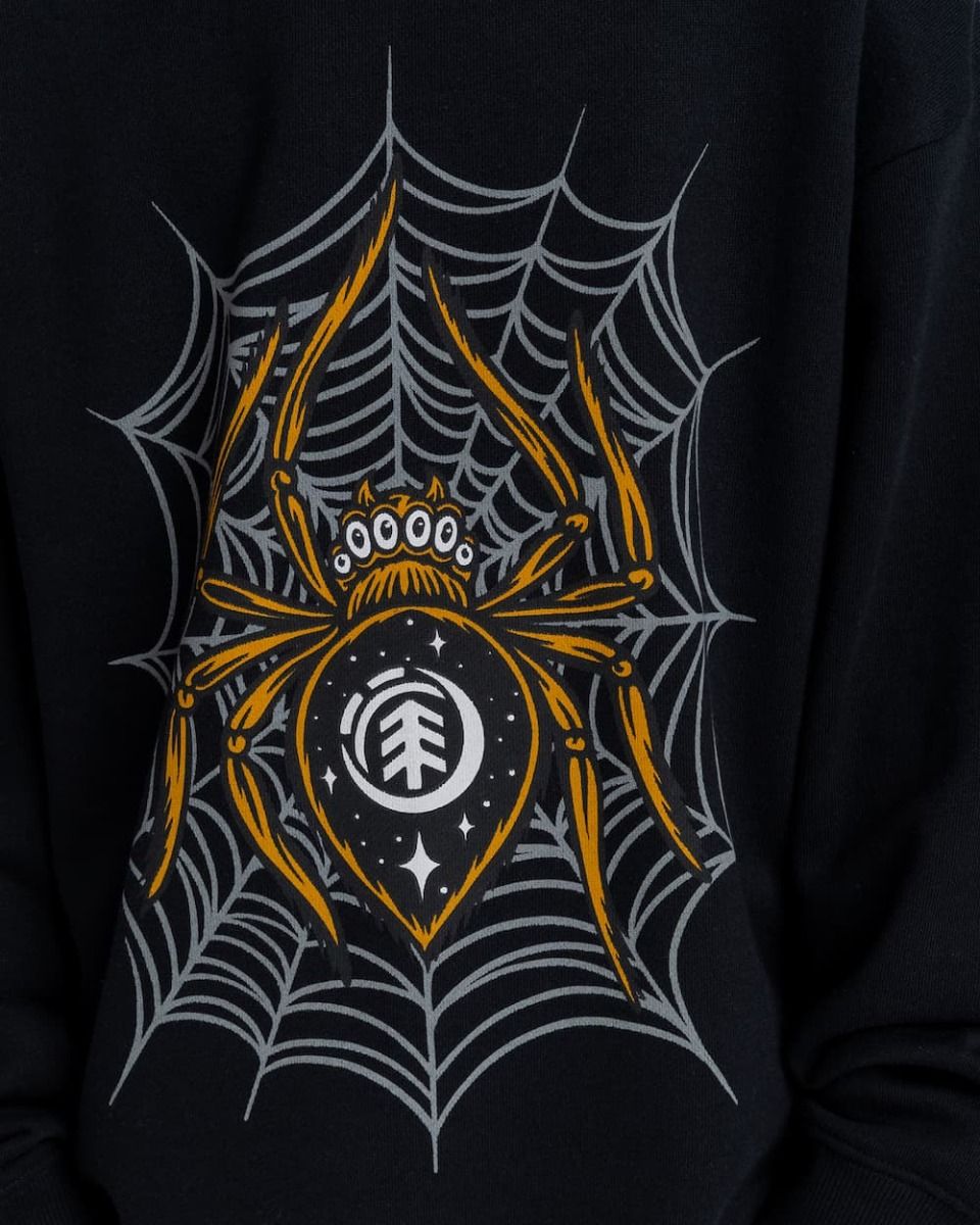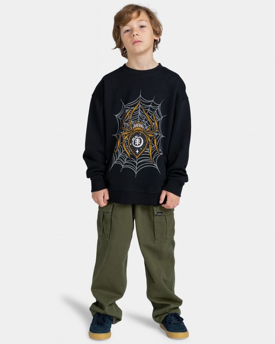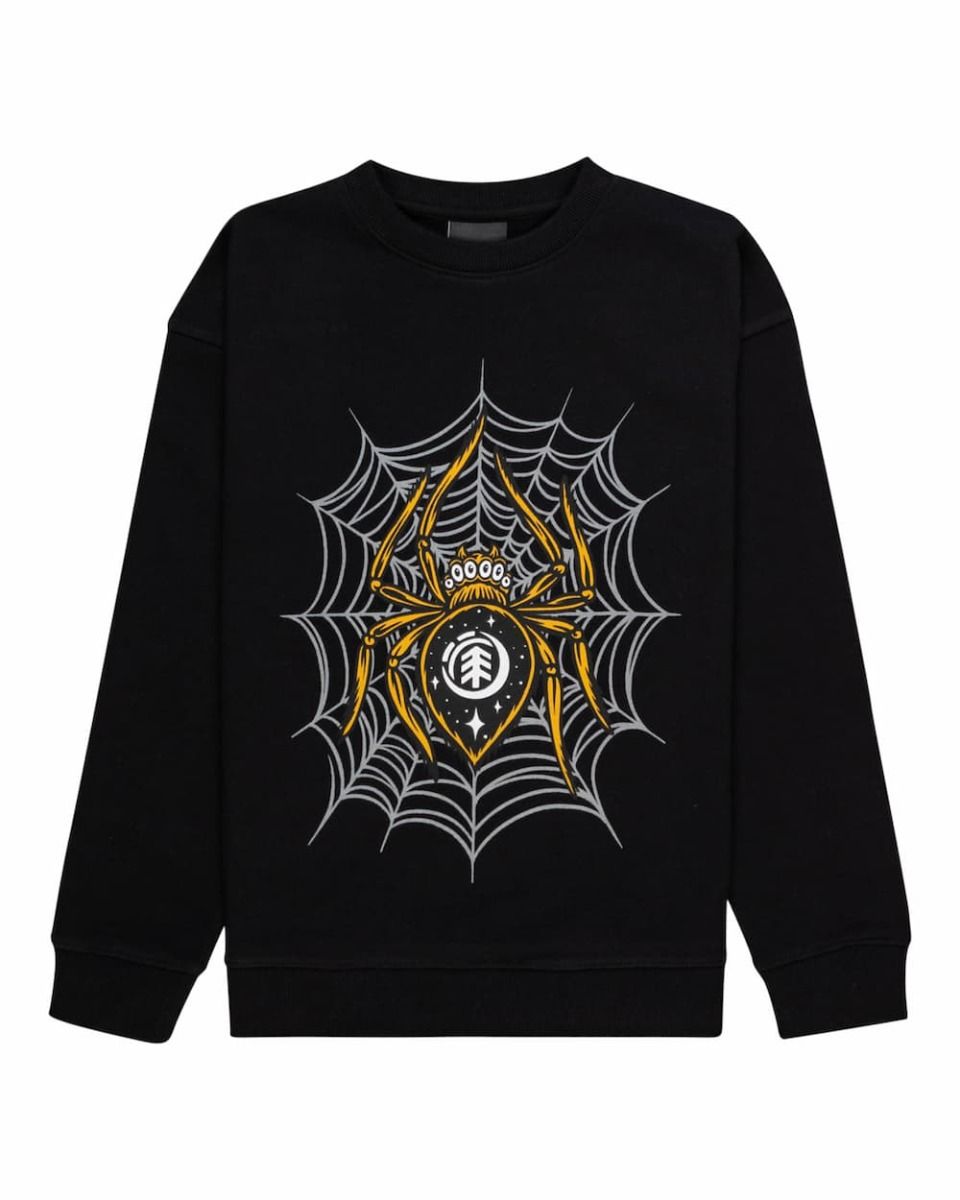 La sudadera para niños de entre 8 y 16 años Nocturnal Spider Crew en negro (Flint Black) de Element está confeccionada con 100% tejido de terry francés de algodón (320g/m2).
