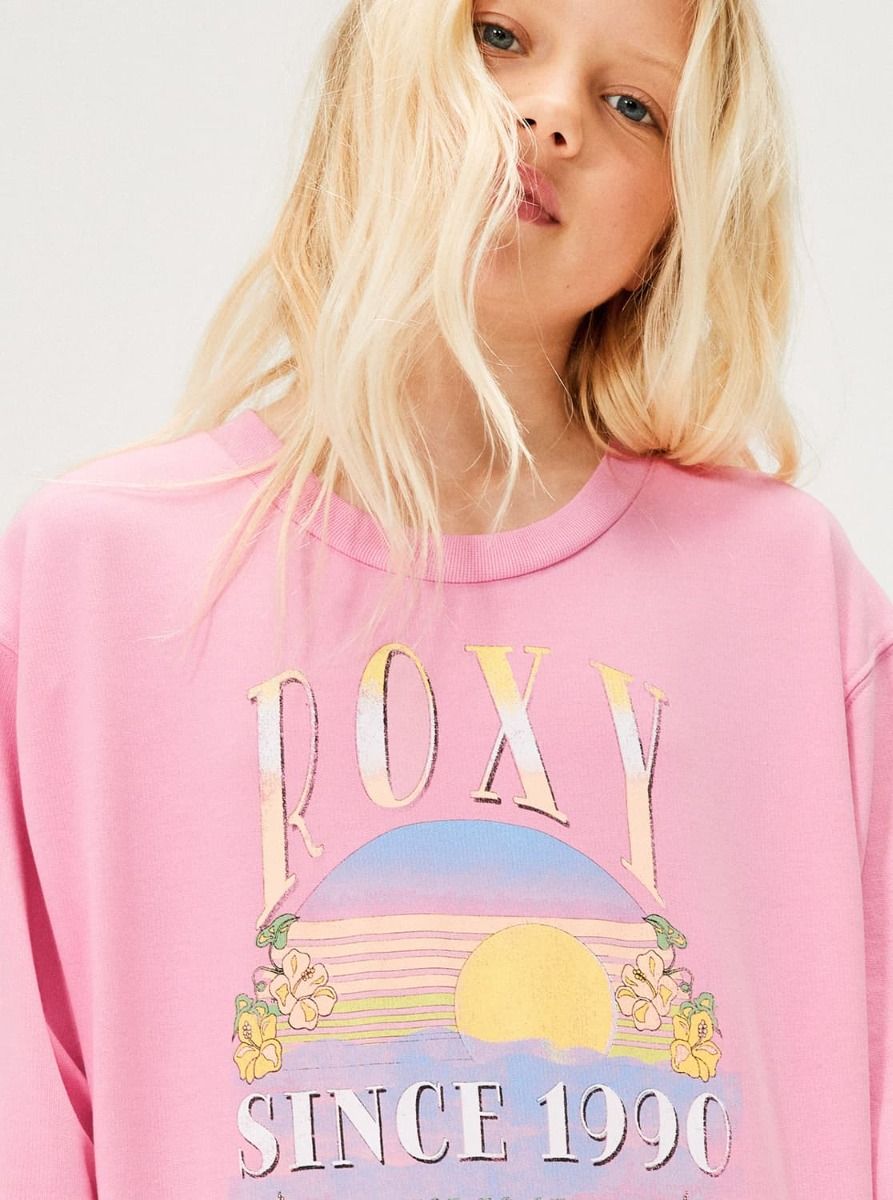 Este crew de ajuste relajado cuenta con cuello redondo, puños, cuello y cintura acanalados, sisas bajas y serigrafiado Roxy en la parte delantera.
