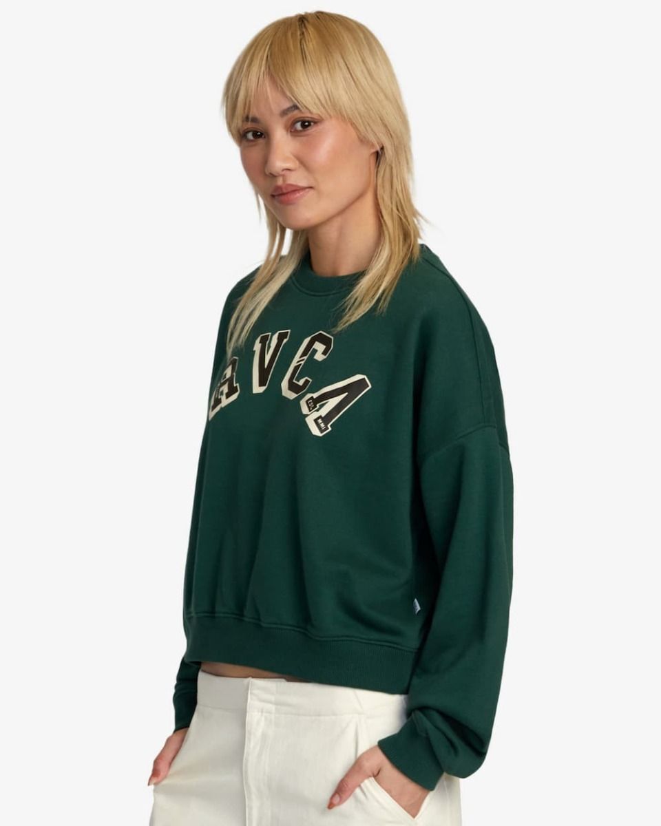 La sudadera Ivy League Verde para mujer de RVCA no puede faltar en tu fondo de armario streetwear.