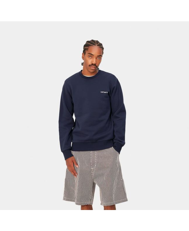 Sudadera Carhartt WIP Script Embroidery Sweat en color azul con el logo en blanco para hombre