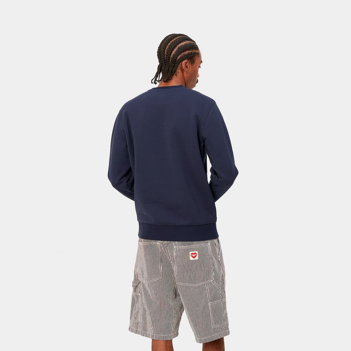 La sudadera Script Embroidery Sweatshirt azul y blanca para hombre tiene una etiqueta de garantía Carhartt Work In Progress cosida en el cuello interior.