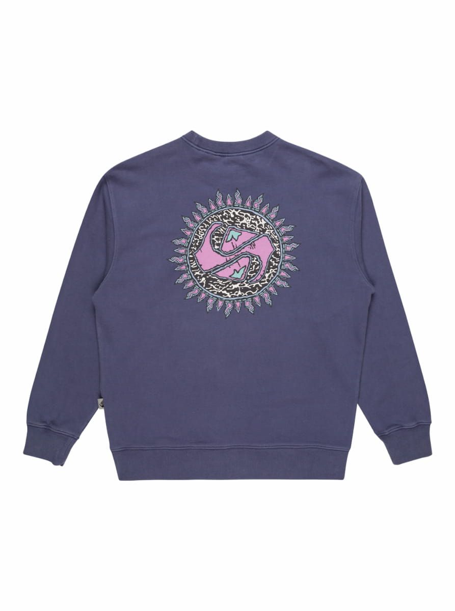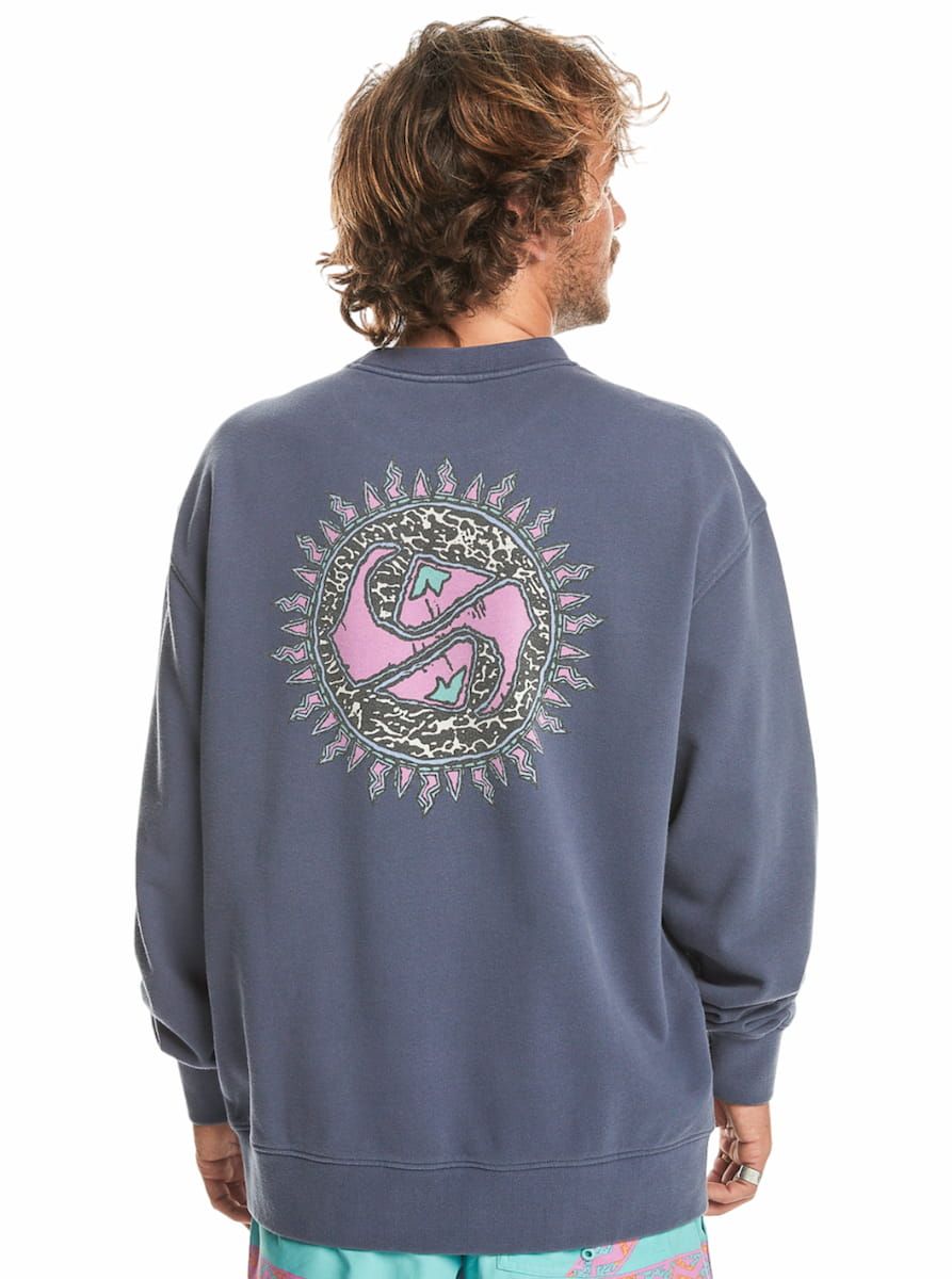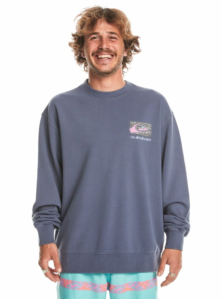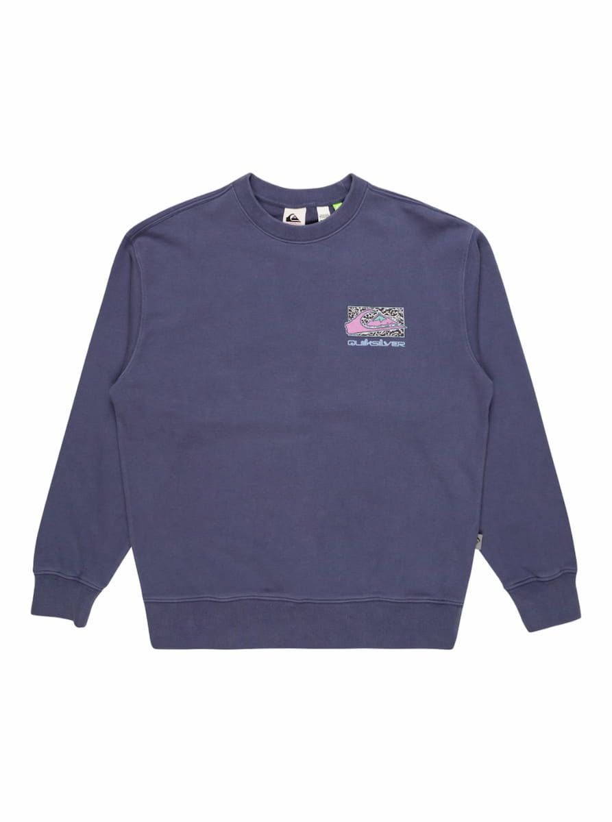 Este crew surfero orgánico azulado de corte extra-grande, perteneciente a la Colección Heat Wave de Quiksilver, presenta tejido lavado para un look vintage, cuello redondo, puños y dobladillo inferior acanalados, junto con un estampado Quiksilver de temporada impreso en el lado izquierdo del pecho y en la espalda.