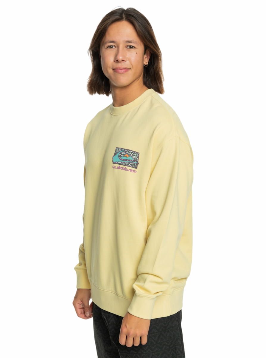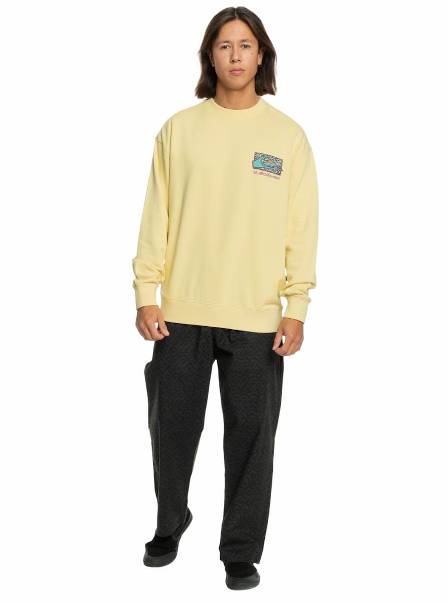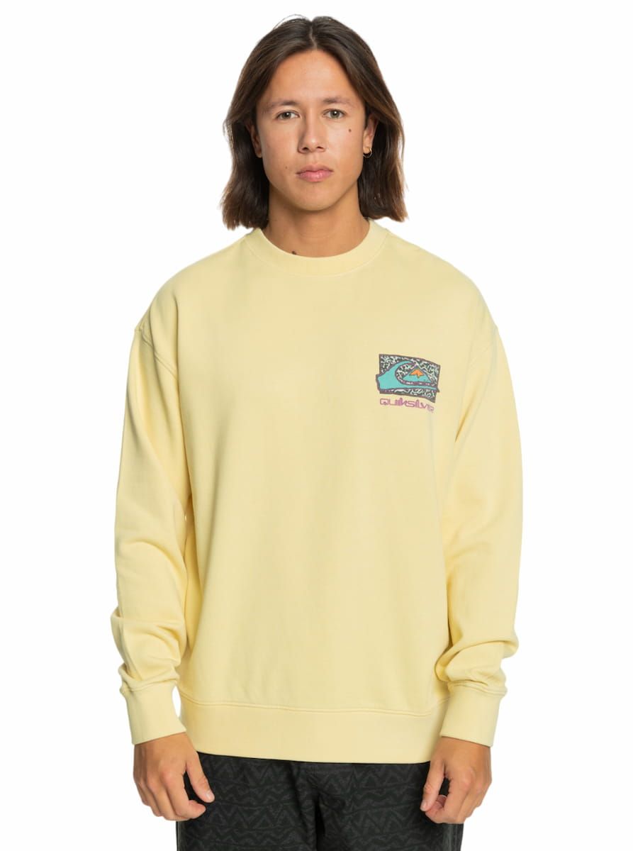 La sudadera para hombre Spin Cycle Crew en tono amarillo suave (Mellow Yellow) de Quiksilver está confeccionada con suave tejido de terry francés en 100% algodón orgánico (380g/m2).