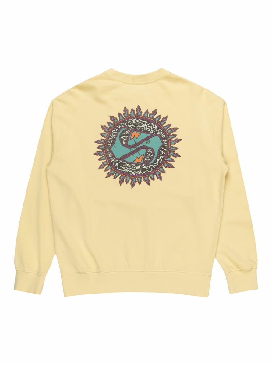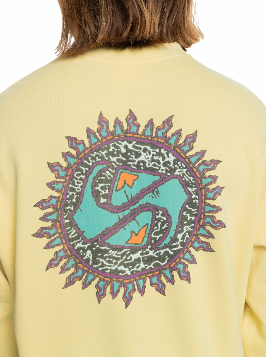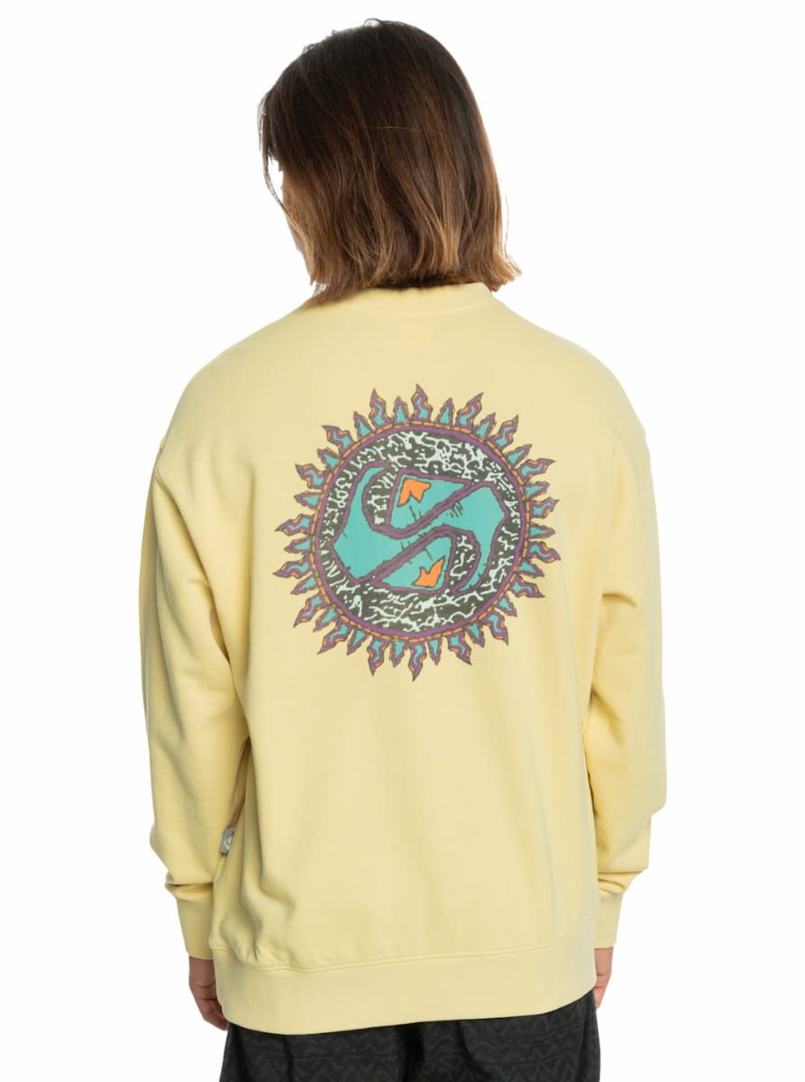 La sudadera para hombre Spin Cycle Crew en tono amarillo suave (Mellow Yellow) de Quiksilver está confeccionada con suave tejido de terry francés en 100% algodón orgánico (380g/m2).
