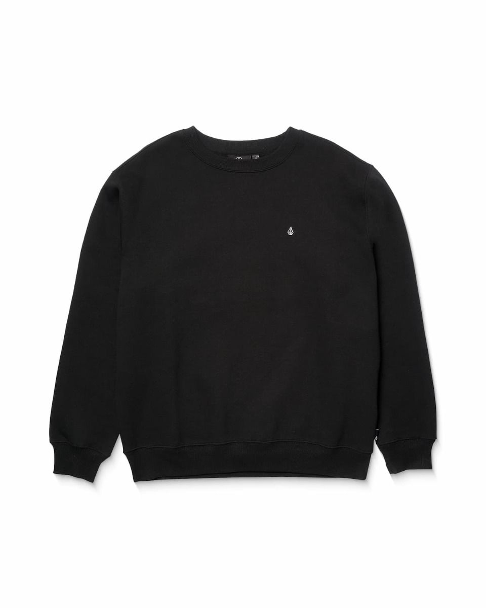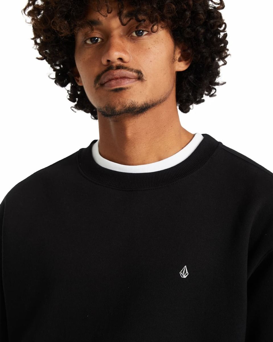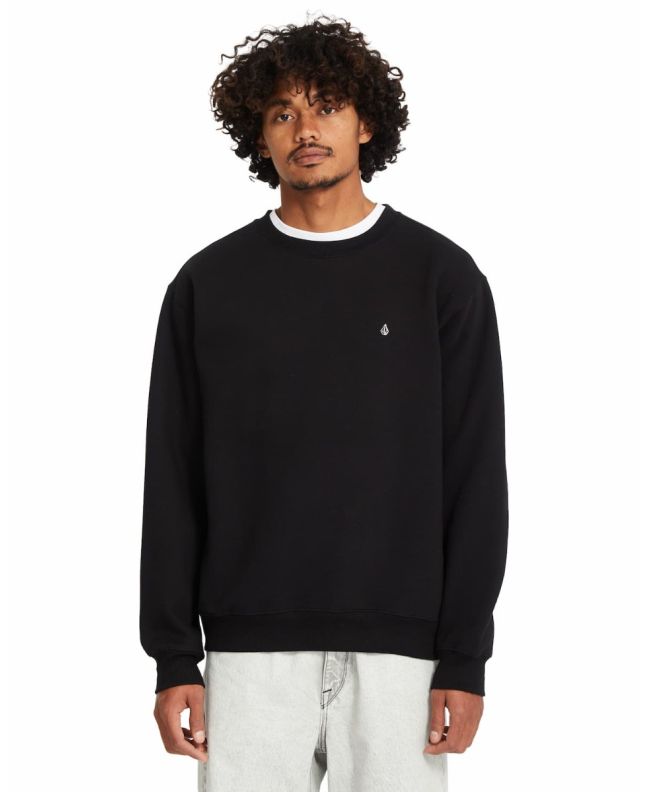 La sudadera para hombre Single Stone Crew en tono negro (Black) de Volcom está confeccionada con suave tejido afelpado en mezcla de 80% algodón y 20% poliéster reciclado Repreve™ (330g).