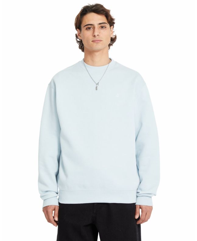 La sudadera para hombre Single Stone Crew en tono azul carolina (Carolina Blue) de Volcom está confeccionada con suave tejido afelpado en mezcla de 80% algodón y 20% poliéster reciclado Repreve™ (330g).