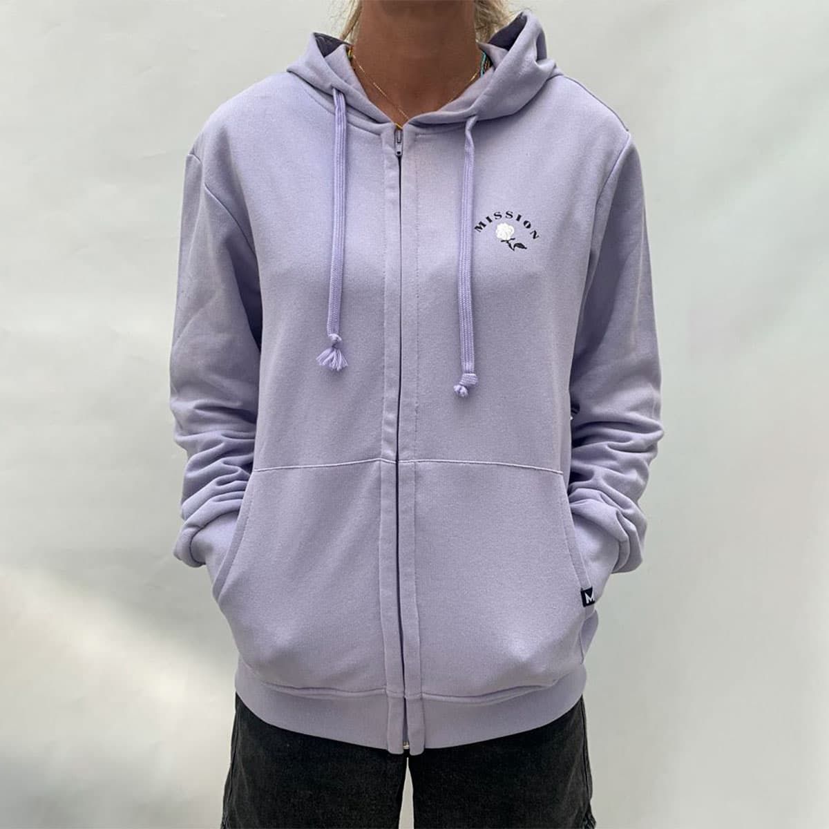 Sudadera con capucha y cremallera Mission Logo Rose en color lavanda Unisex