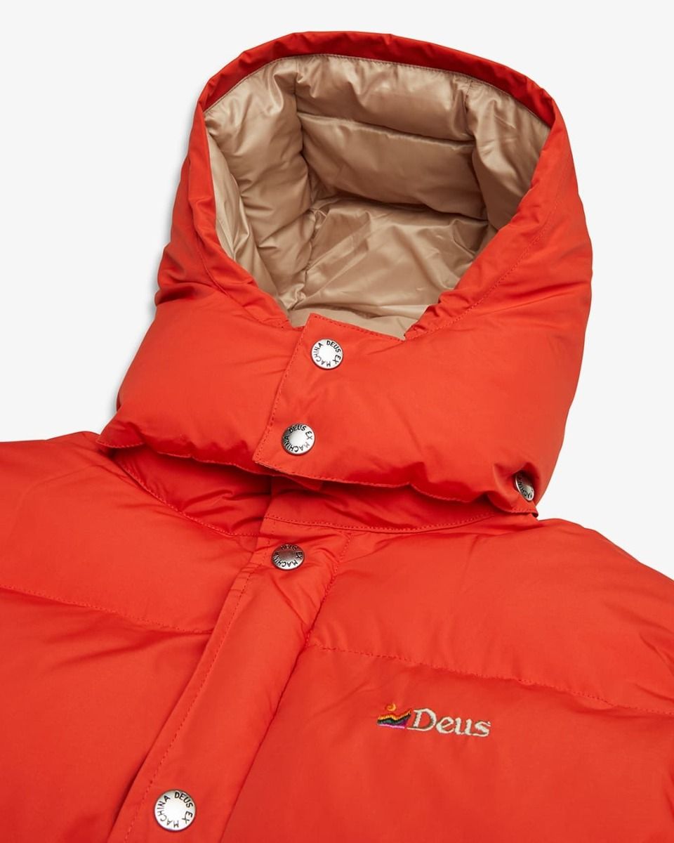 La chaqueta de invierno para hombre Summit Puffer Jacket en rojo (Red Clay) de Deus Ex Machina está confeccionada con 100% poliéster.