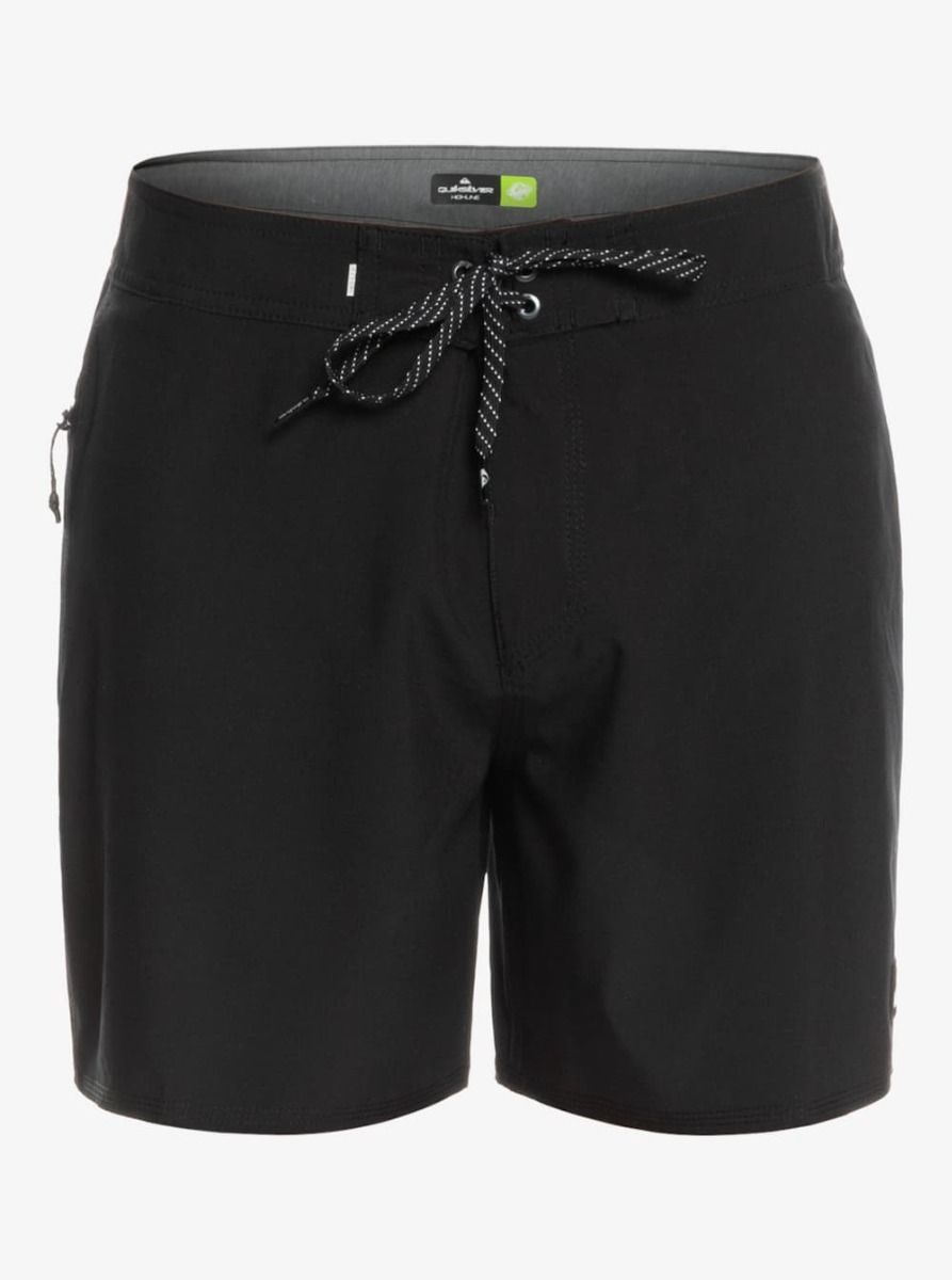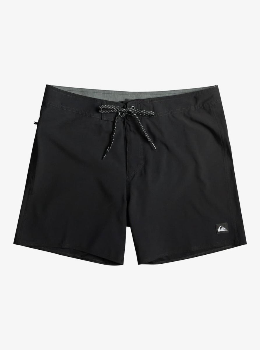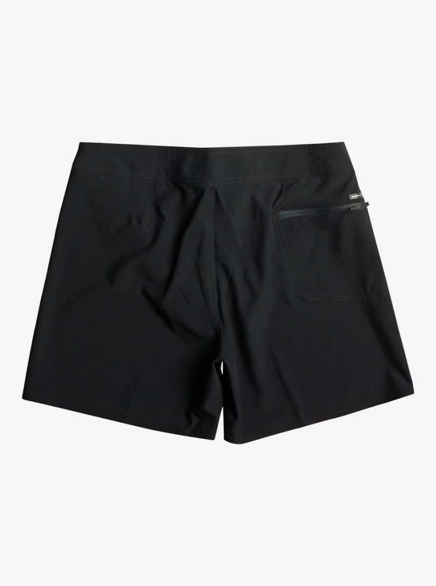 Este boardshort de corte performance cuenta con longitud de 16" (40,6cm), recubrimiento hidrofóbico a base de plantas, cintura fija con cierre de cordón ajustable, bragueta performance, bolsillo posterior con cremallera cubierta, un cordón elástico para llaves en el interior del bolsillo y un pequeño parche de tela con el logo de la ola y la montaña de Quiksilver tejido en la pierna izquierda.