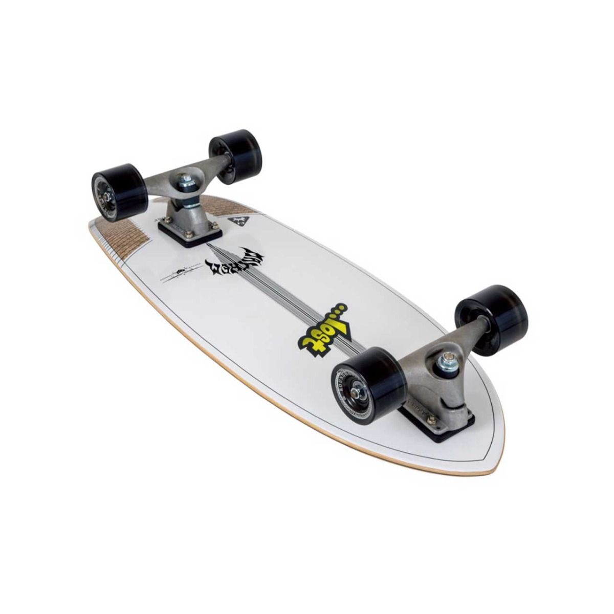 El surfskate completo Carver x Lost Puddle Jumper 30.5" C7 tiene el logo de Carver grabado en la parte posterior y frontal.