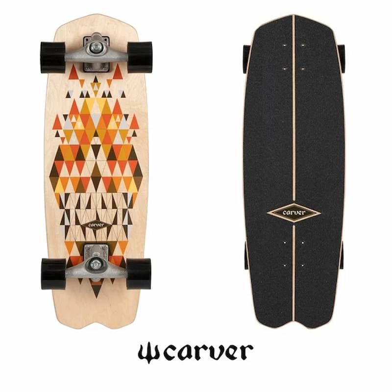El surfskate completo Spectra 28,25" con eje CX tiene el logo de Carver grabado en la parte posterior y frontal.