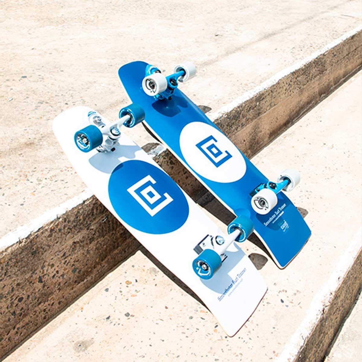 El surfskate completo Connor O'Leary S (Small) Pro Model 31" en gris y azul marino (Grey/Navy) con tecnología Thruster D (THD) de Smoothstar está especialmente diseñado para surfistas adolescentes y adultos de entre 162cm y 177cm de altura.