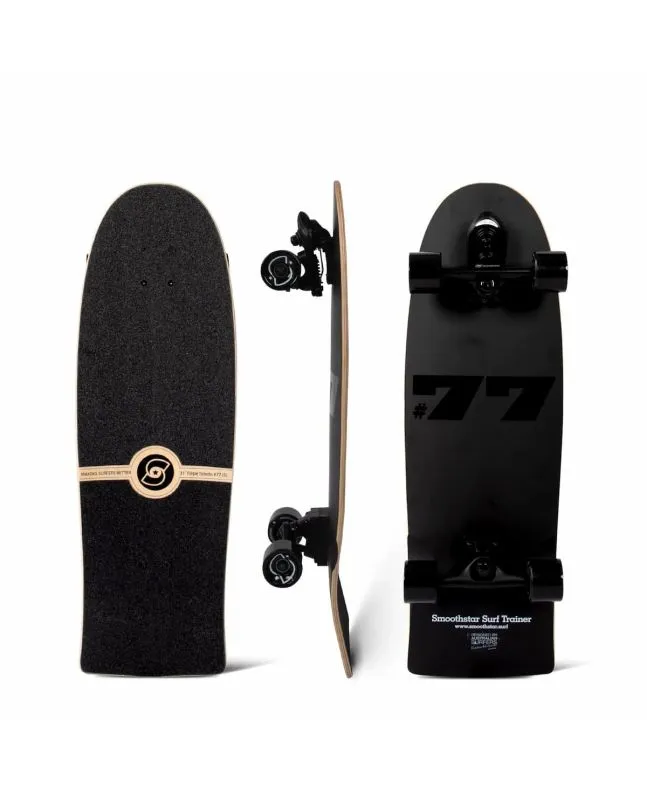 El surfskate completo Toledo #77 S (Small) Pro Model 31" negro (Black) con tecnología Thruster D (THD) de Smoothstar está especialmente diseñado para surfistas adolescentes y adultos de entre 162cm y 177cm de altura.