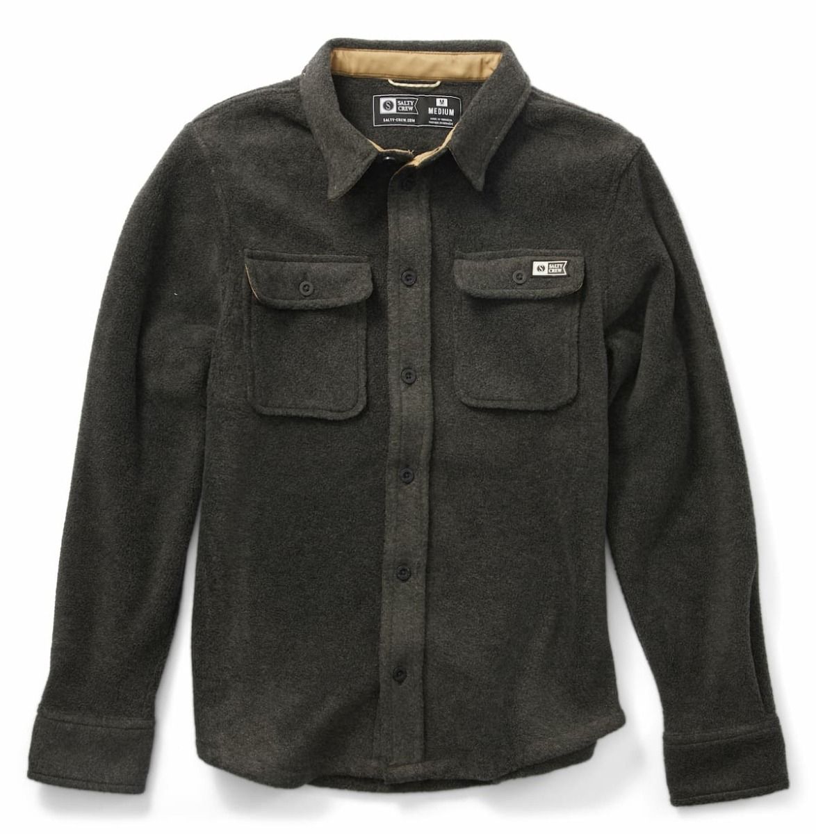 La camisa de manga larga para niños de 8-14 años Swellter Polar Fleece Boys Shirt en tono gris oscuro (Charcoal Heather) de Salty Crew está confeccionada con tejido polar extra-suave fleece de 100% poliéster cálido y aislante.