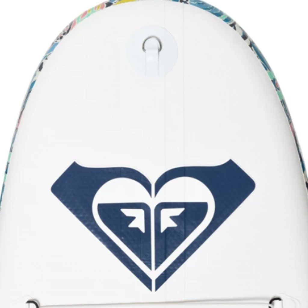 La tabla de Stand Up Paddle hinchable ISUP Molokai 10'6" Blue en color azul tiene los logos de Roxy estampados.