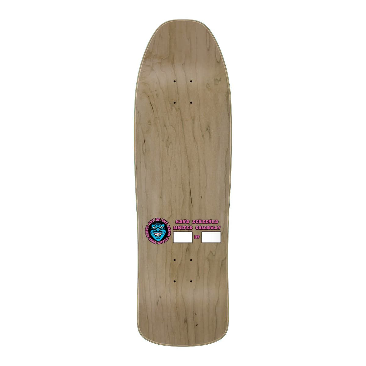 Esta tabla para monopatín de Edición Limitada cuenta con chapa teñida en tono azul y negro con efecto de desvanecimiento, el gráfico de Santa Cruz Speed Wheel estampado con calor en la cola, junto con serigrafiado artístico de Jim Phillips y Phillips Studios de la Era Dorada de Santa Cruz Speed Wheels.