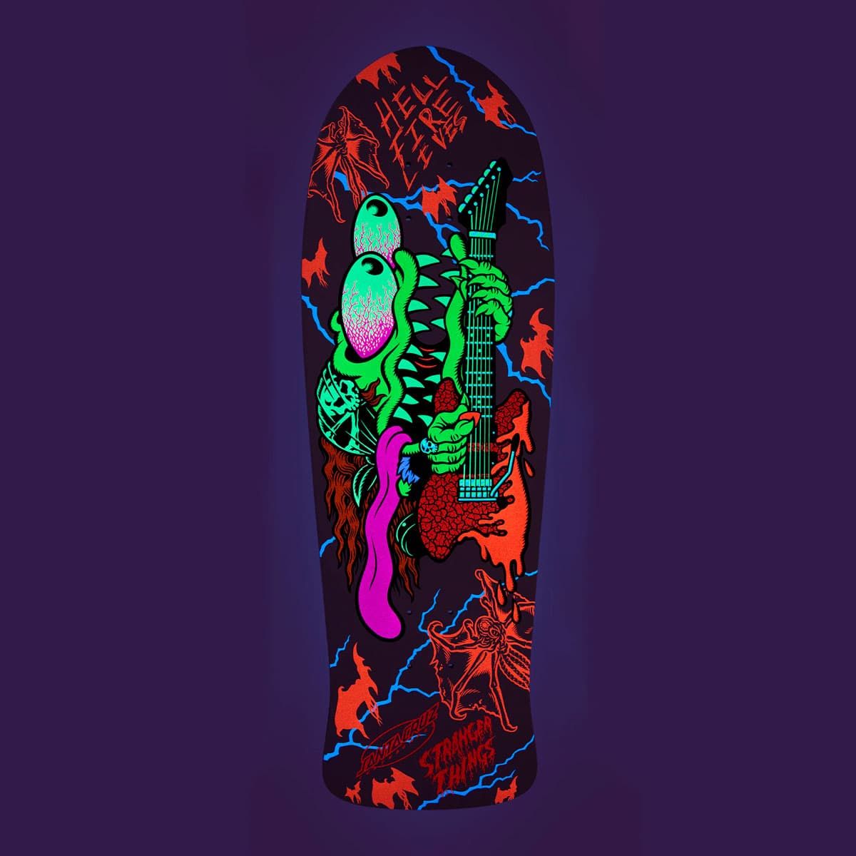 Tabla de Skate Santa Cruz x Stranger Things Meek Slasher Eddie Reveal 10.1" x 31.13" – Edición Limitada (Glow in the Dark)