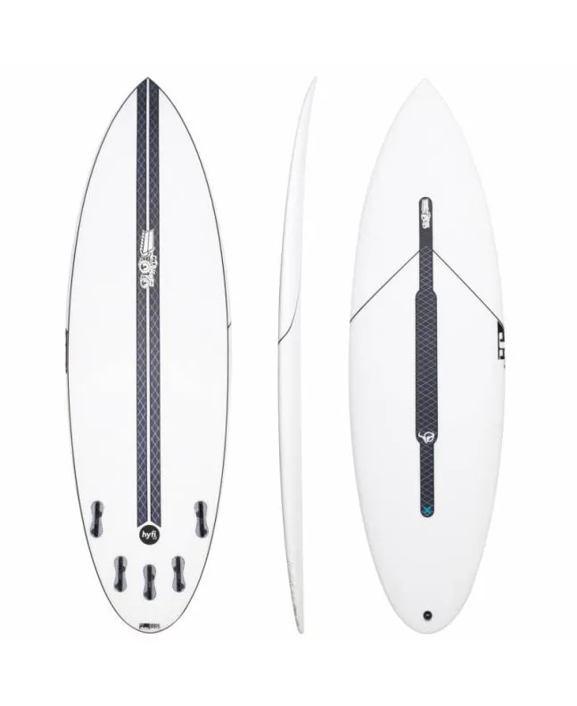 La tabla de surf Bullseye HYFI 2.0 5'8" 29,5 Litros en blanco (White) de Js Industries está fabricada con tecnología epoxy HYFI, una construcción multicapa única que proporciona a esta shortboard más ligereza y fuerza, a la vez que conserva la flexión ideal para un rendimiento máximo.