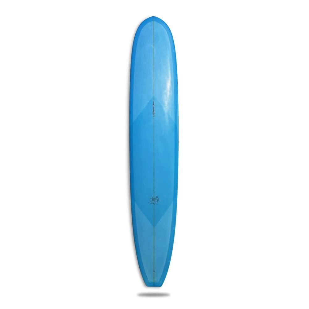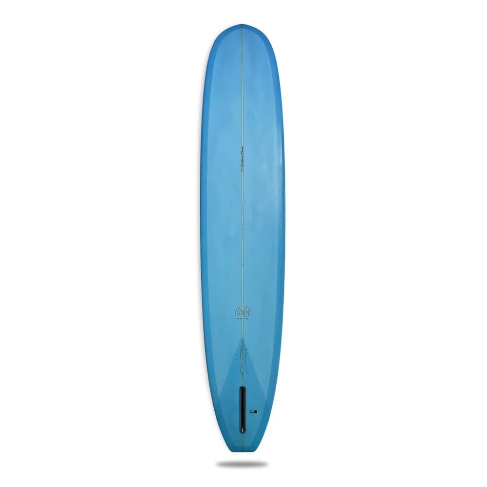 Tintada en tono azulado, el longboard California Dream 9'6" presenta cola cuadrada, nose muy cóncavo que sale y termina en una suave V para realizar giros suaves con total seguridad y cantos 60/40.