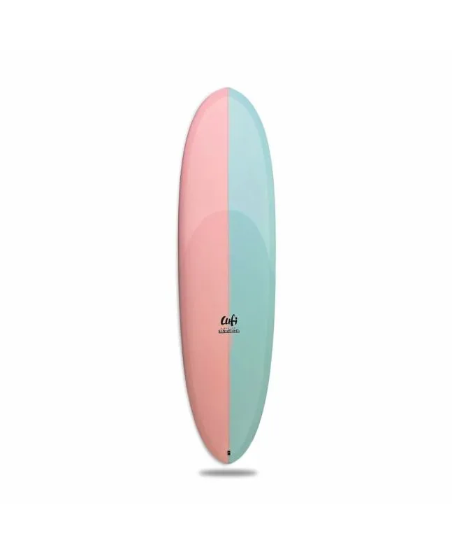 Su construcción en EPS con acabado pigmentado estilo Cotton Candy le da ese toque retro visual y esa respuesta rápida bajo los pies. El volumen está concentrado en el centro, lo que facilita la remada sin sacrificar agilidad. El nose redondeado aporta mayor estabilidad al ponerte de pie, y la cola round pin se adapta perfectamente a una amplia variedad de olas, desde picos suaves hasta paredes más empinadas.
