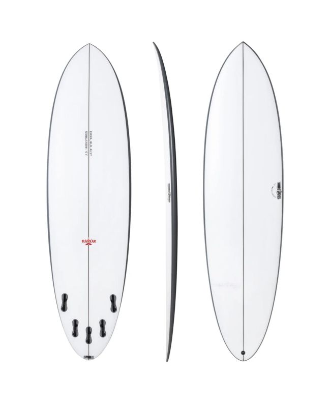 El Barón es sin duda la estrella de la familia Baron con su sutil paso de cóncavo simple a doble a través de las quillas con un "cóncavo inverso", por lo que el cóncavo es más profundo en el centro, mientras que es ligeramente más llano en el nose y la cola para un mejor flujo del agua, control y lograr el máximo impulso a altas velocidades.