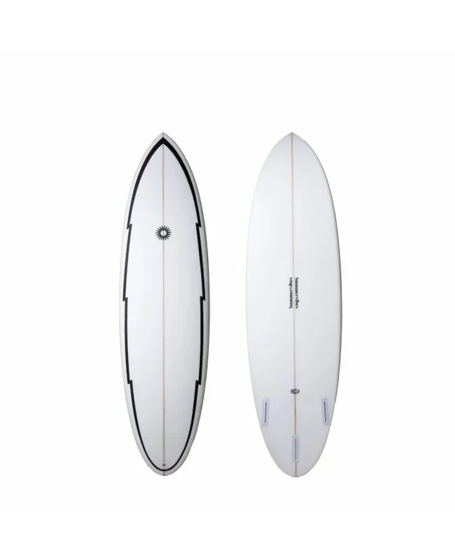 Tabla de surf Shortboard Summer Vibes Discus 6'4'' x 20 3/4 x 2 7/8 en color blanco con detalles en negro 43,1 Litros (Futures)