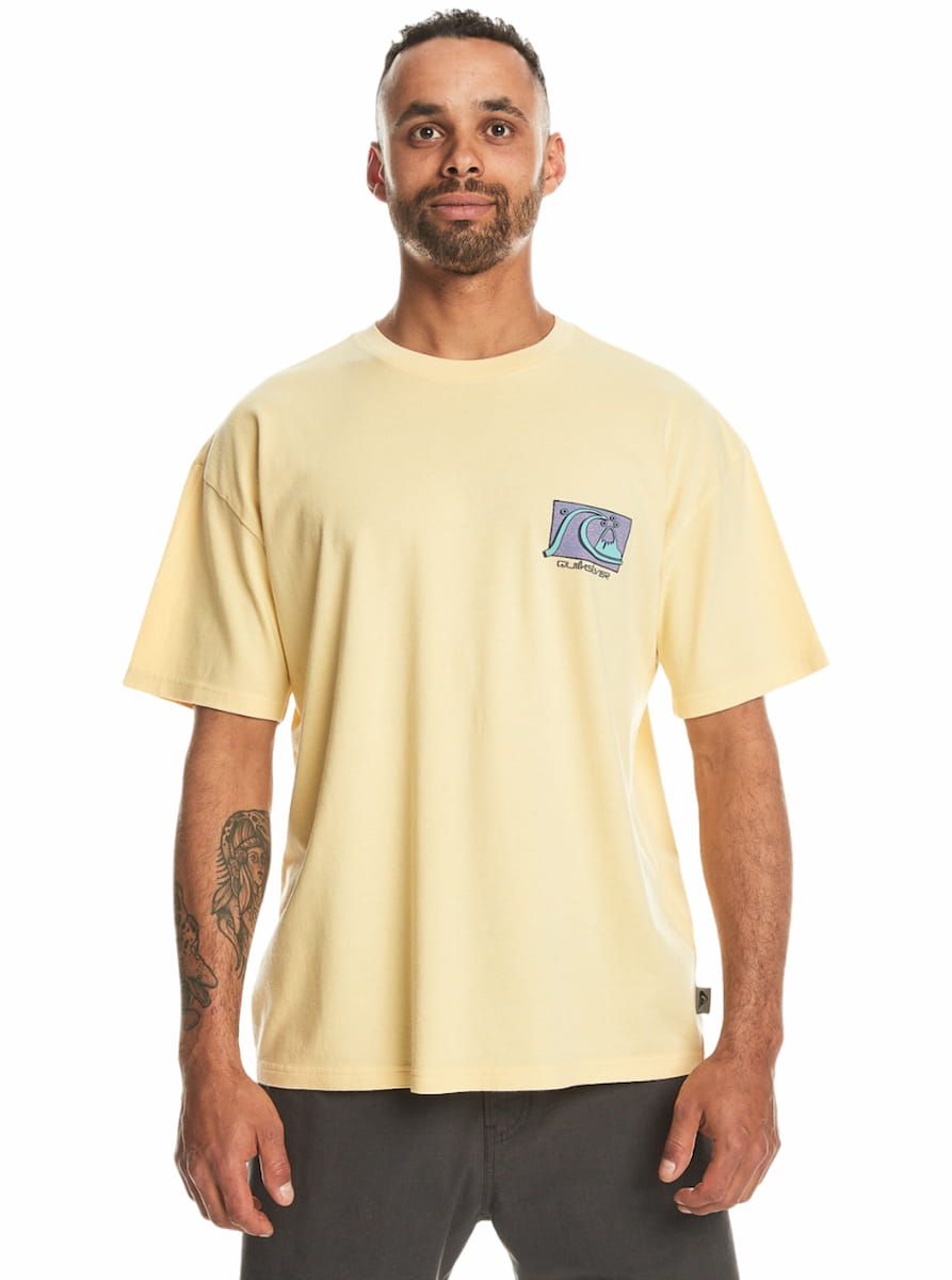 La camiseta extra-grande para hombre Take Us Back Bubble Short Sleeve Tee en tono amarillo suave (Mellow Yellow) de Quiksilver está confeccionada con 100% tejido de algodón orgánico (160g/m2).