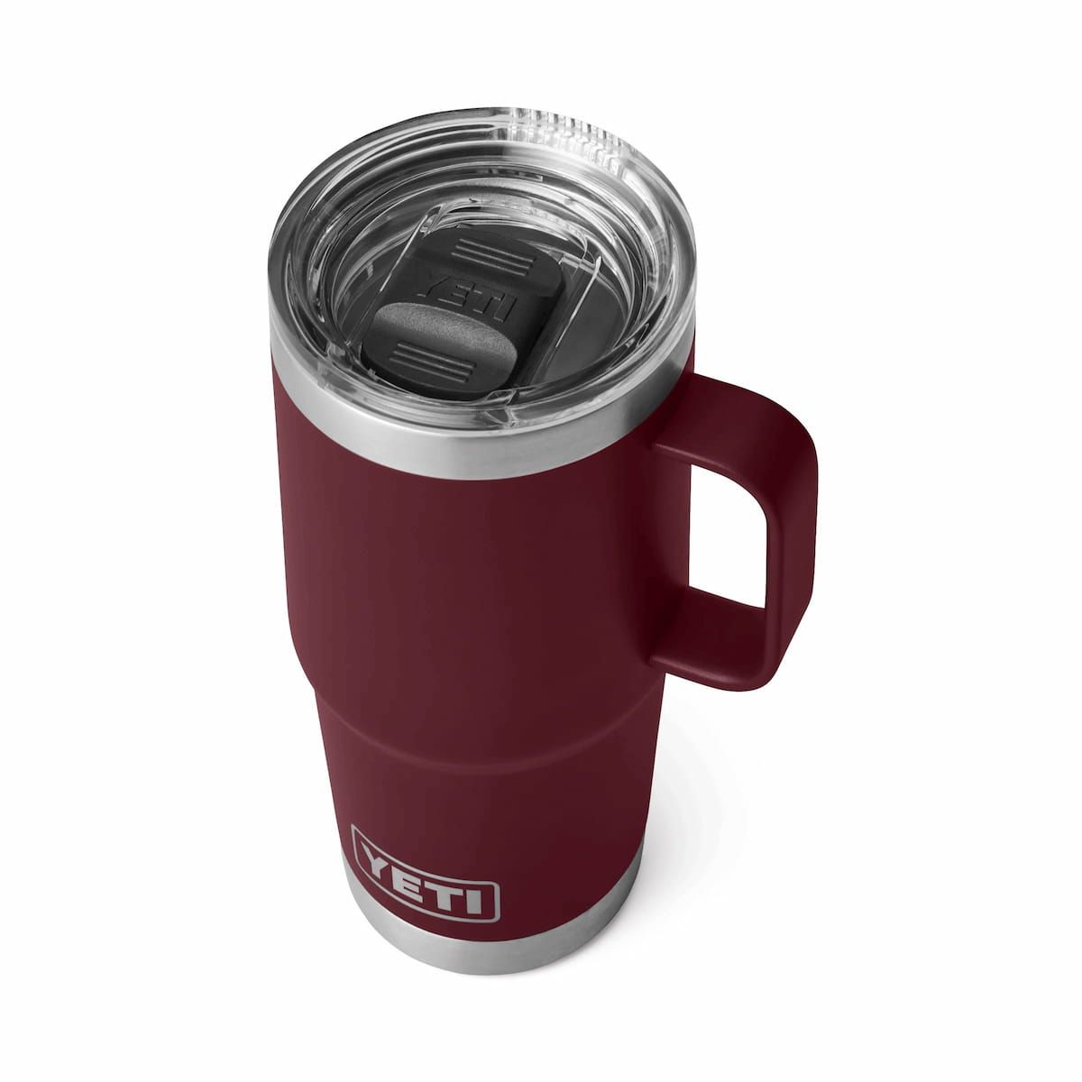 La Rambler Travel Mug 20oz viene equipada con la tapa giratoria anti-goteo *Stronghold™, diseñada especialmente para este modelo, la cual presenta cuatro opciones de colocación, tecnología de doble imán deslizante y se adapta tanto a diestros como zurdos.