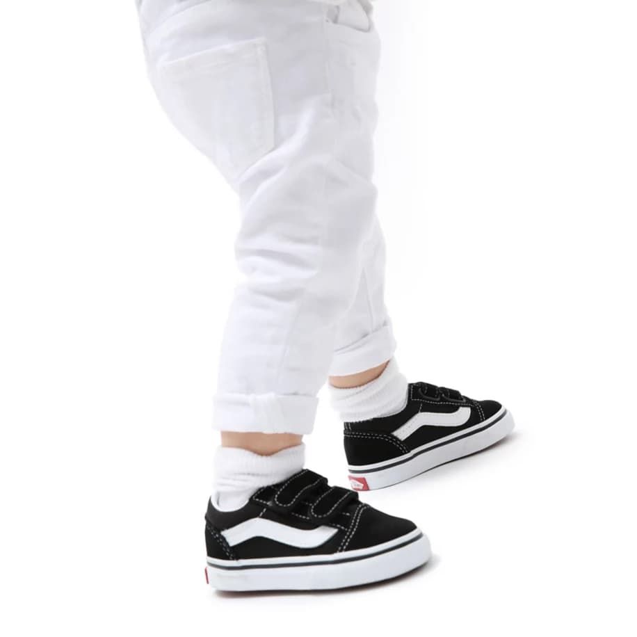Estas zapatillas bajas inspiradas en las primeras Old Skool que lucían la inconfundible banda lateral de Vans, cuentan con forro, cuello acolchado y cierre de velcro para una sujeción total y mejor flexibilidad, que facilita la tarea de ponerlas y quitarlas, y da mayor comodidad y seguridad a tu bebé.
