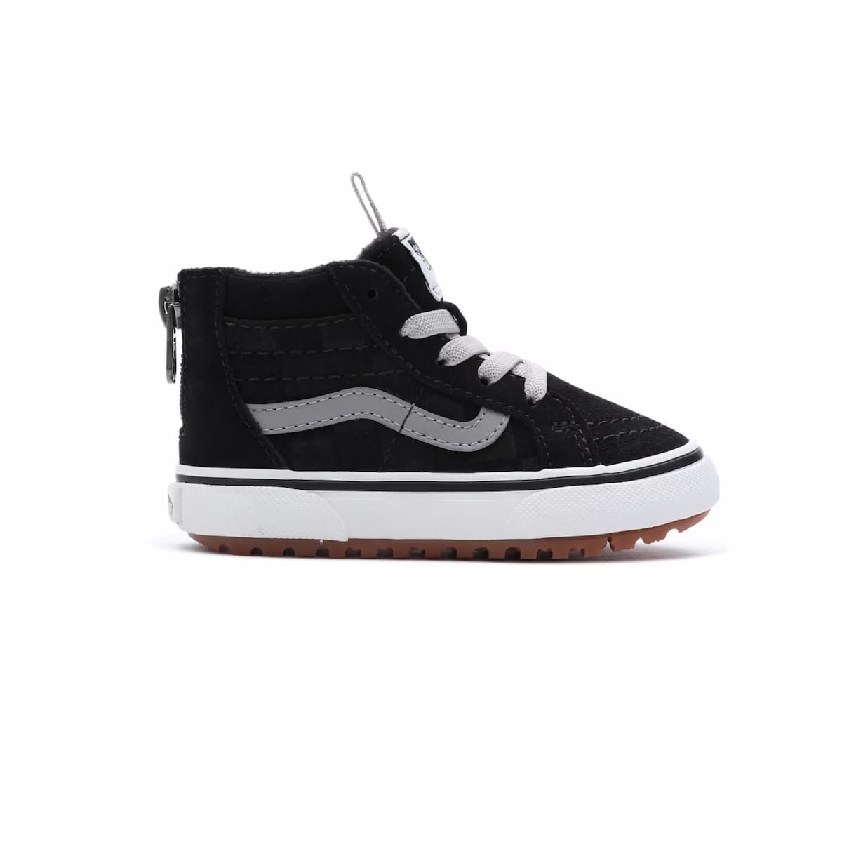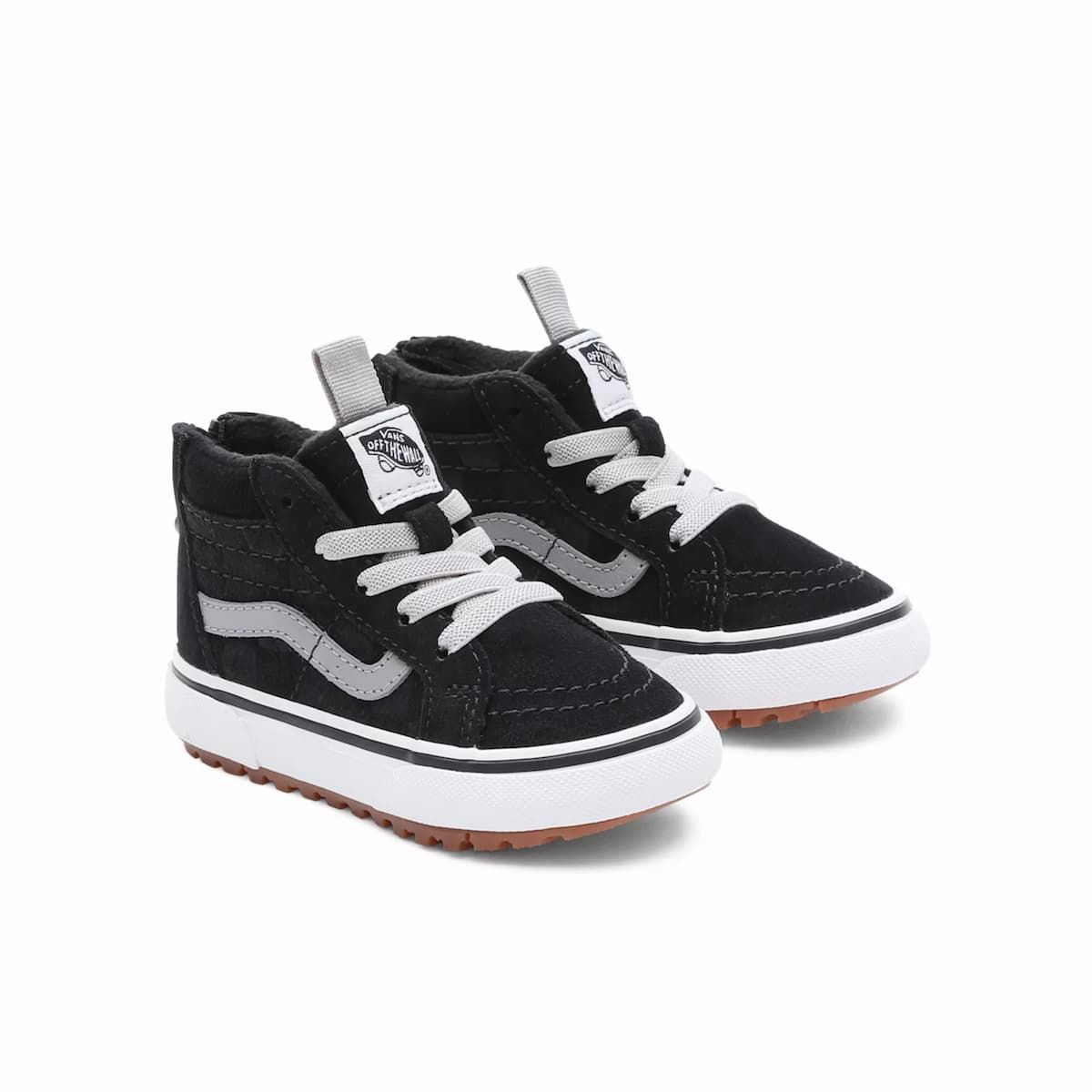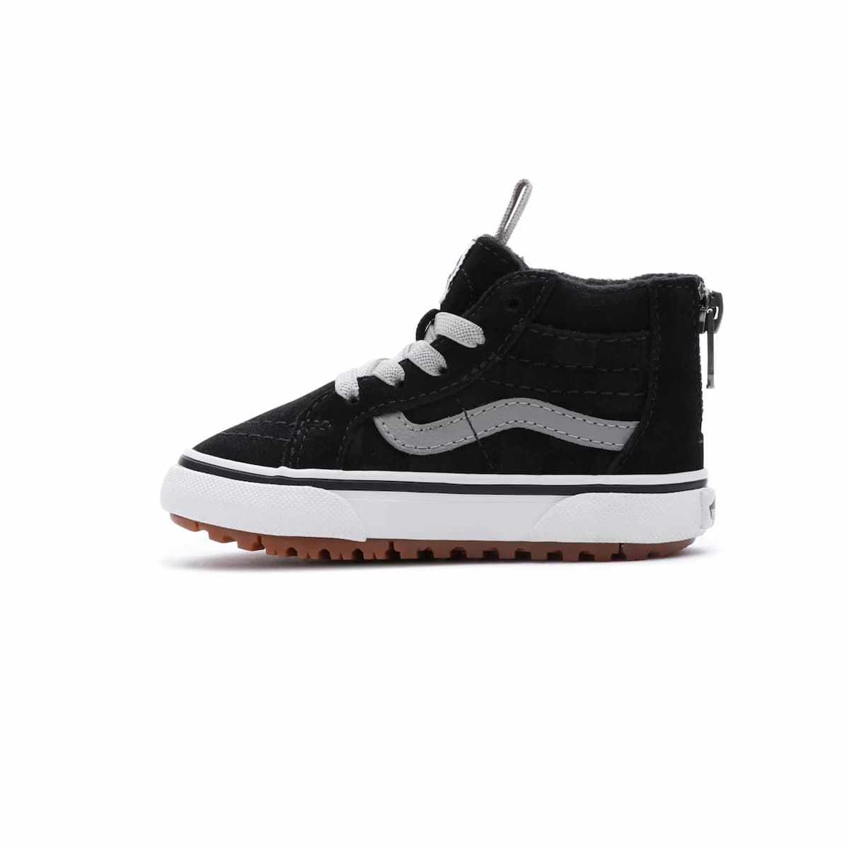 Las zapatillas para bebé Toddler SK8-Hi Zip MTE-1 negras con estampado checkerboard (Tonal Check Black) de Vans están confeccionadas con ante y caucho.