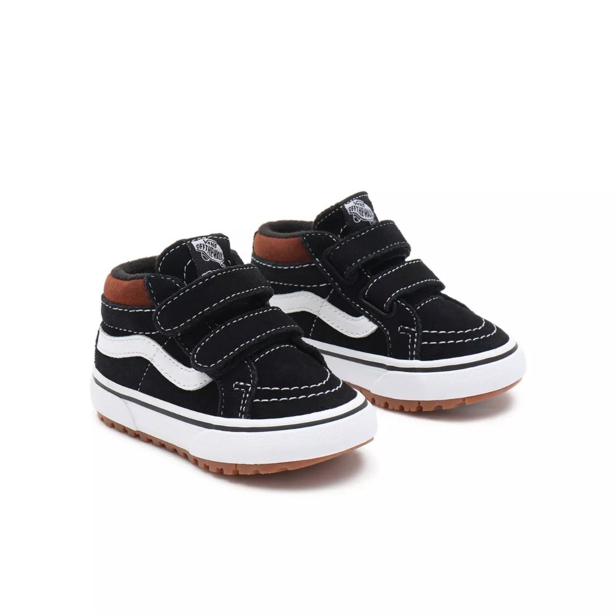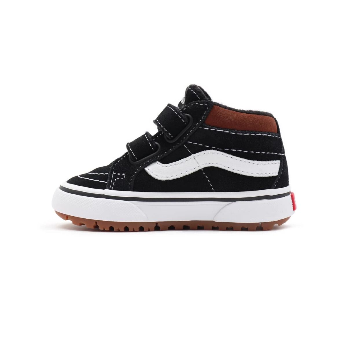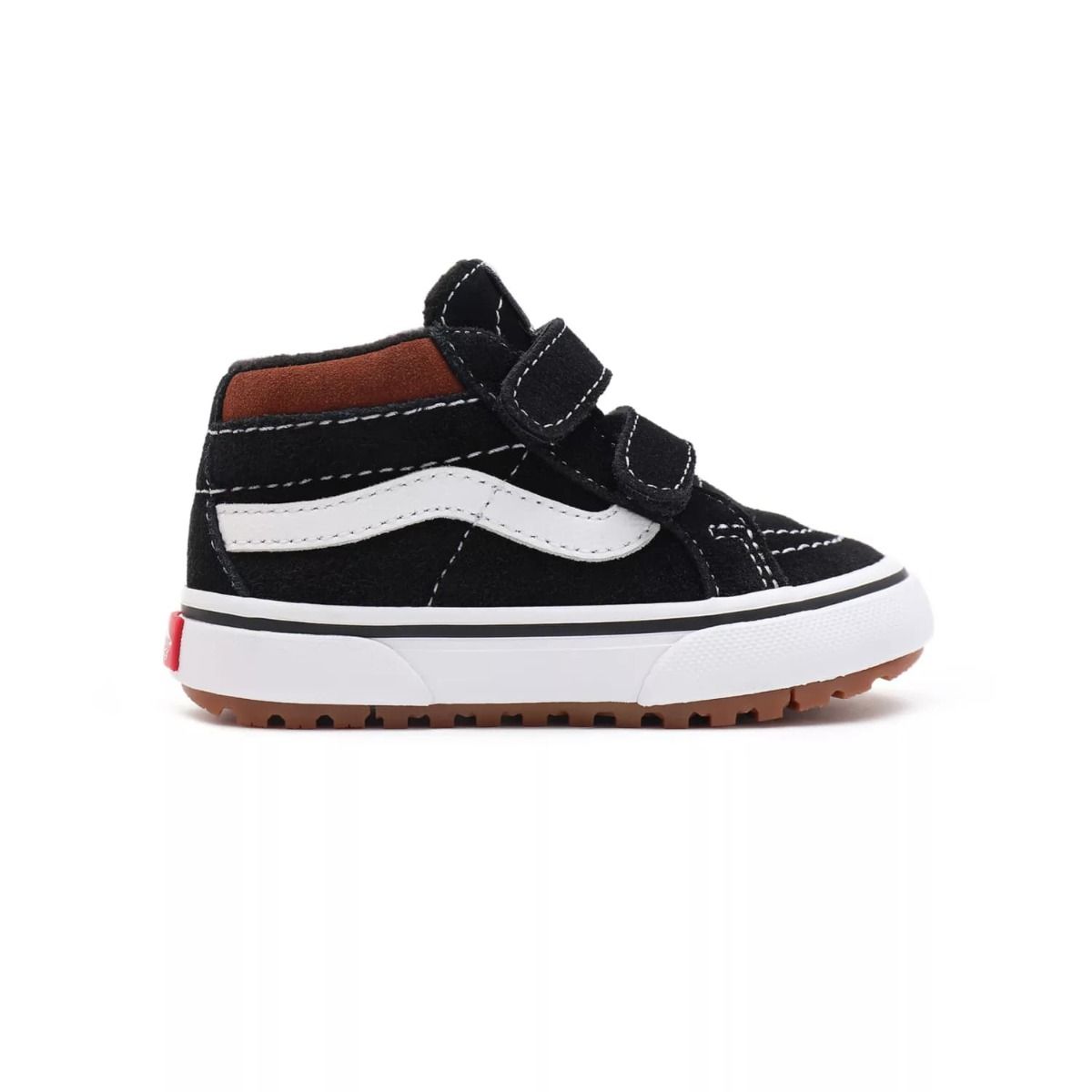 Las zapatillas para bebé Sk8-Mid Reissue V MTE-1 negras con la banda lateral sidestripe blanca (Black/Tortoise Shell) de Vans están confeccionadas con ante y cuero.