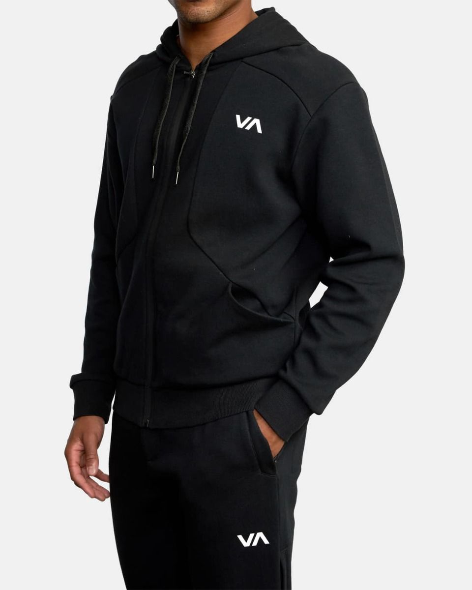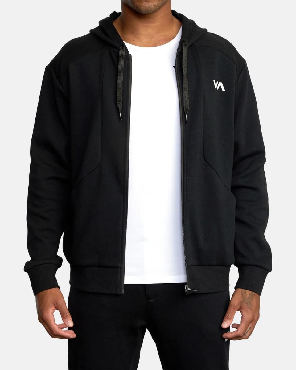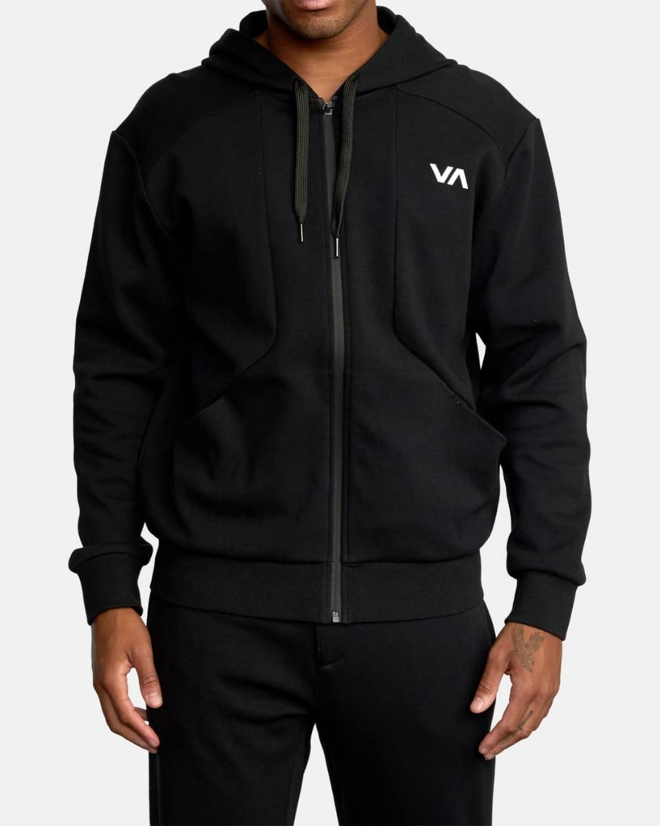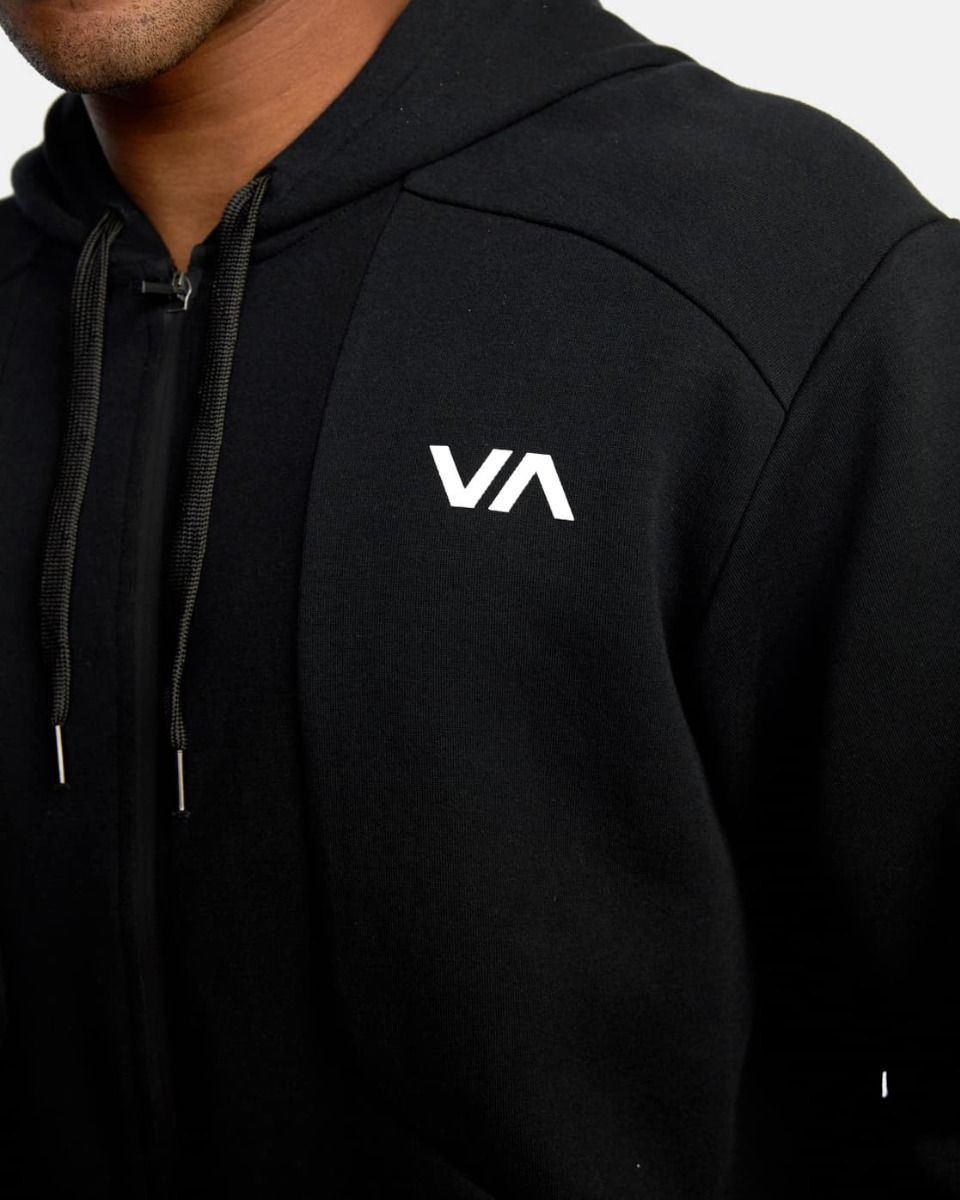 La sudadera técnica con capucha y cremallera Tech negra para hombre tiene el logo de Rvca VA en contraste bordado en el pecho.