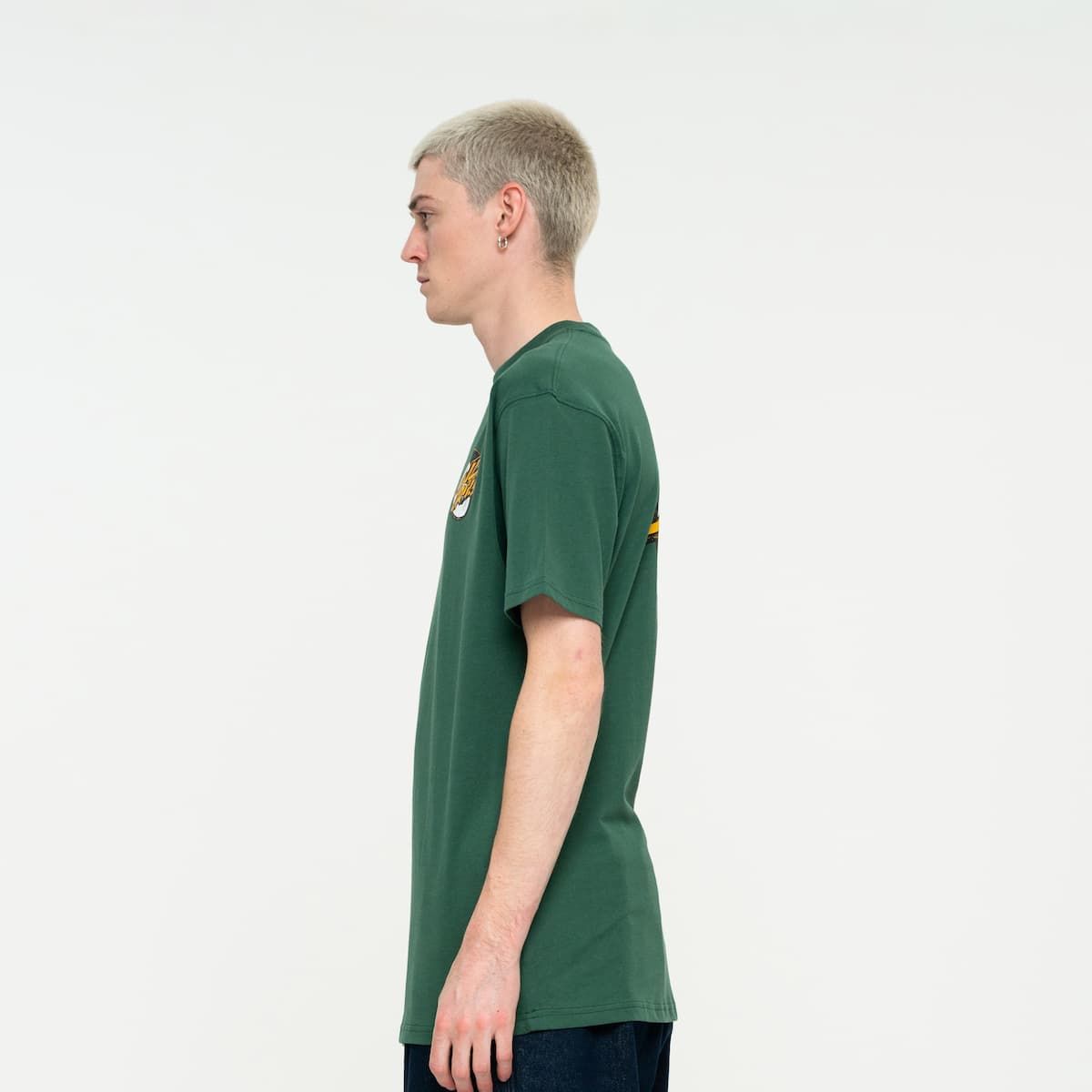 La camiseta de manga corta Yin Yang Dot verde para hombre tiene una etiqueta de garantía Santa Cruz Skateboards en el cuello interior.