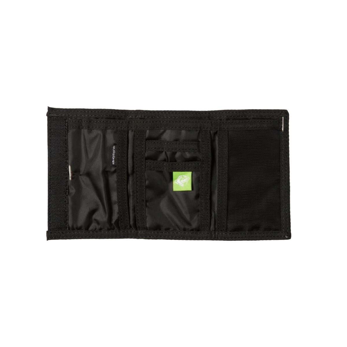 La cartera de velcro con triple hoja The Everydaily color Black Aop Mix Bag Ss para hombre tiene una etiqueta de garantía Quiksilver en el interior.