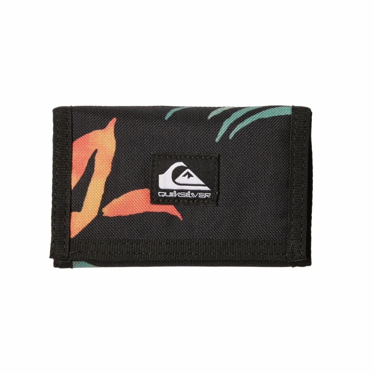 Esta cartera con diseño de triple pliegue cuenta con cierre de velcro, bolsillo exterior para monedas con cierre de cremallera, billetera, ranuras para tarjetas, ventana de malla para el DNI, estampado con detalles tropicales y un parche con el logo de Quiksilver tejido en la zona frontal.