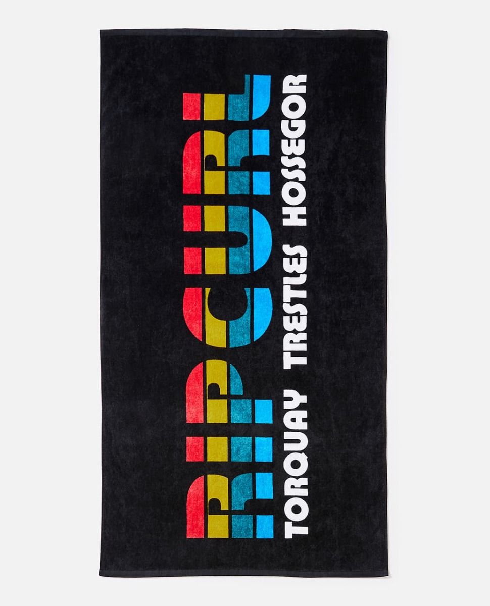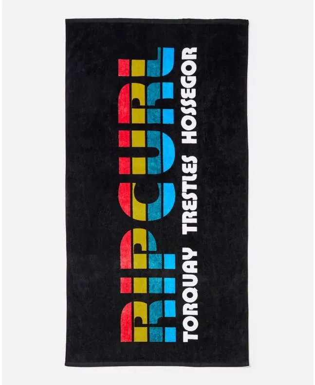 Esta toalla de playa jacquard cuenta con gancho para colgar y estampado Rip Curl - Torquay - Trestles - Hossegor.