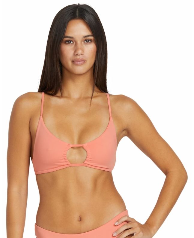 Sujetador de Bikini con tirantes halter Volcom Simply Seamless X en color coral para mujer