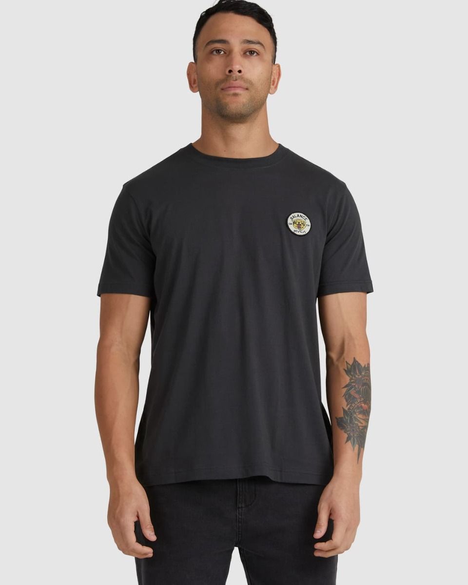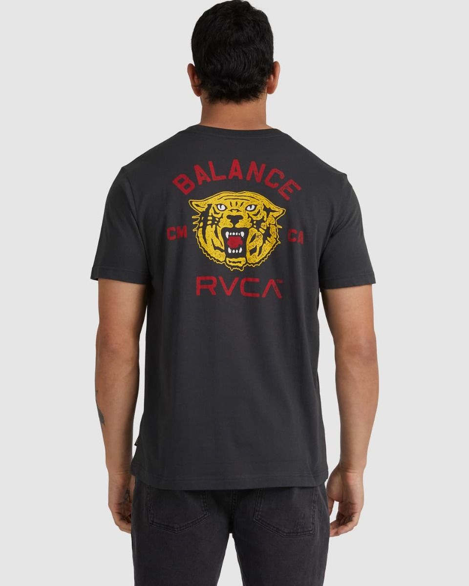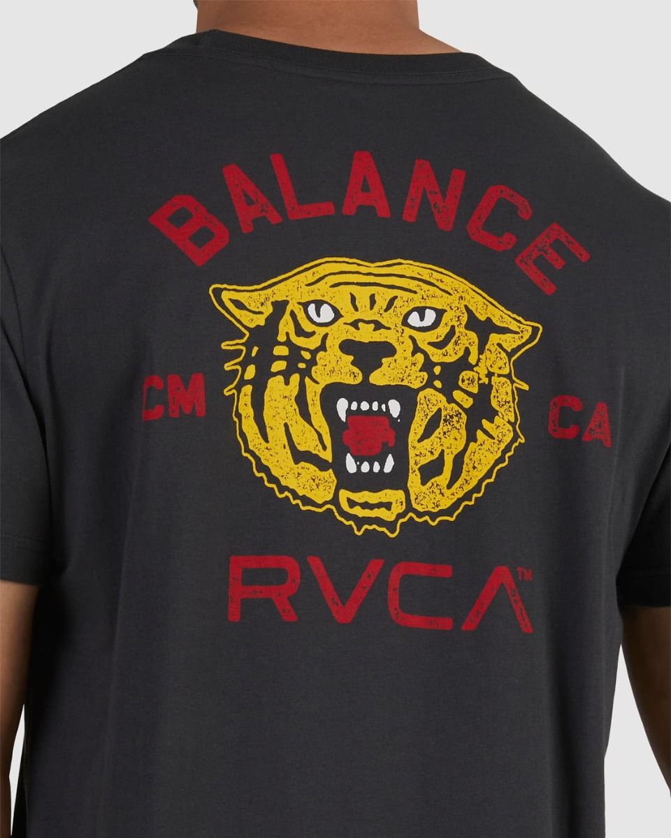 La camiseta de manga corta Toro negra para hombre tiene una etiqueta de garantía Rvca tejida en la costura lateral.