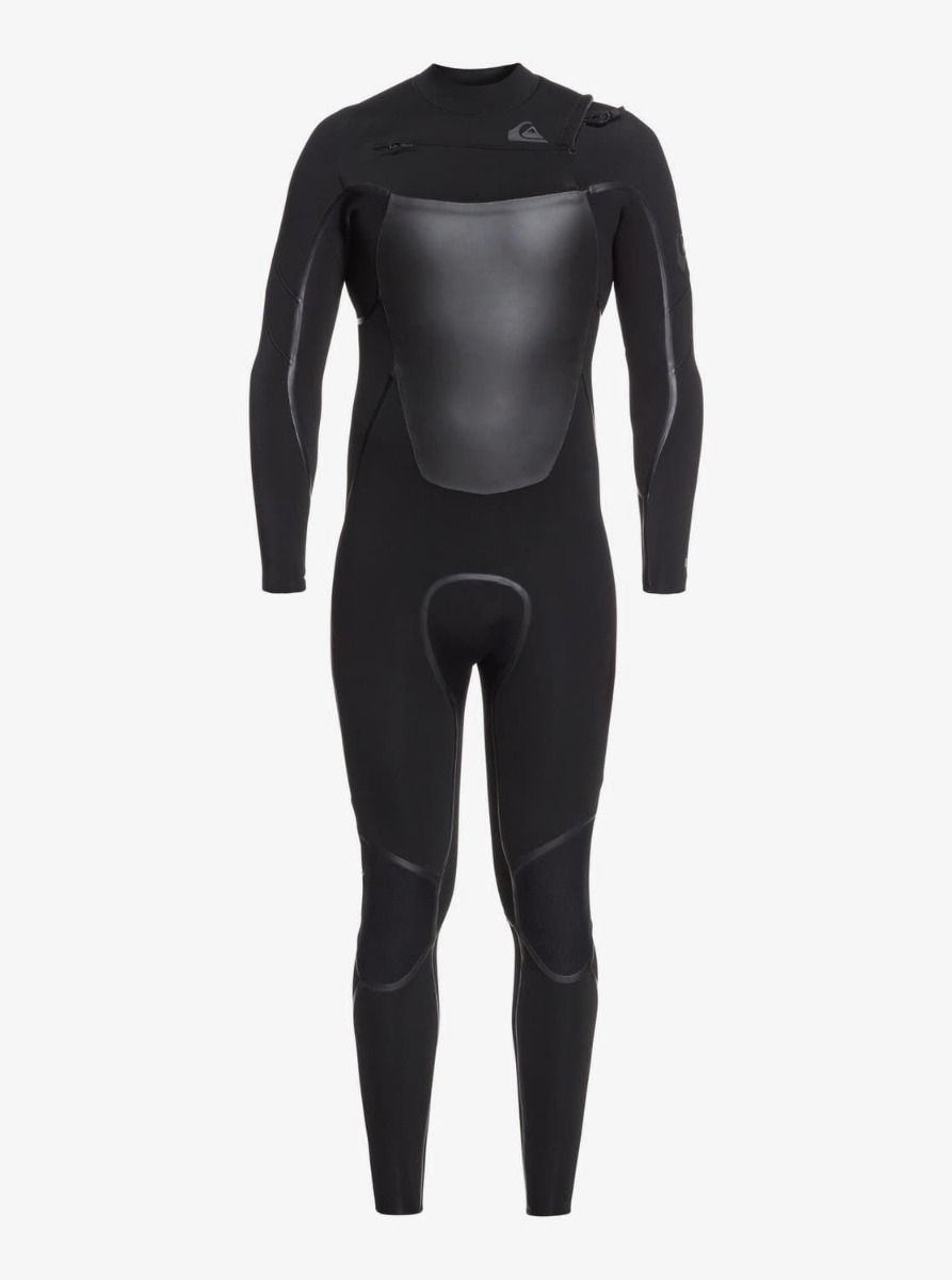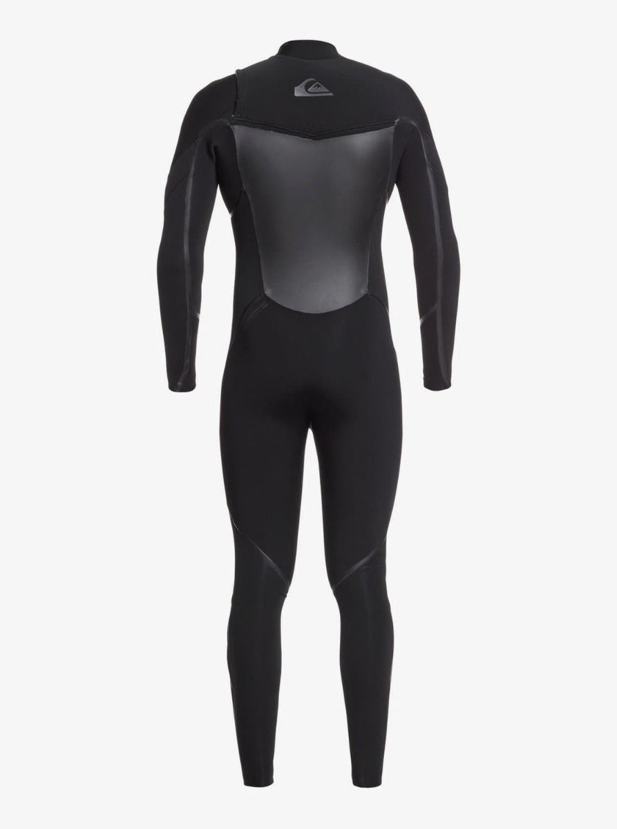 El neopreno integral para hombre Syncro Plus 5/4/3mm Chest Zip negro tiene el logo de Quiksilver estampado en el pecho y la espalda.