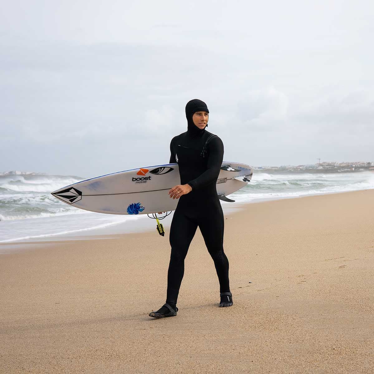 El traje de surf Modulator 4/3mm Hooded Chest Zip negro está recomendado para temperaturas del agua entre 10ºC-13ºC.
