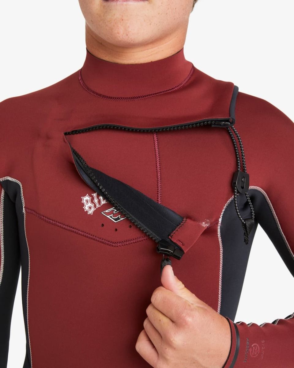 Neopreno con cremallera en el pecho Billabong Boy Absolute Natural 5/4mm en color granate para niño (6-16 años)