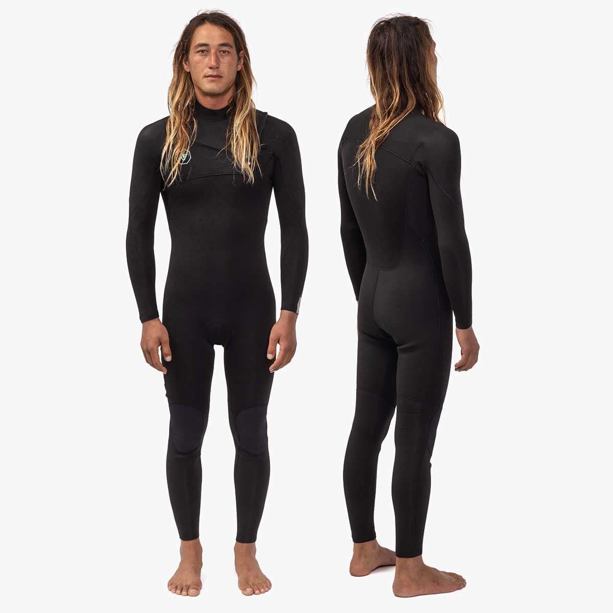 El neopreno Seven Seas 4/3mm Full Chest Zip Negro para hombre viene equipado con sistema de acceso con cremallera el pecho de mínimo volumen y hermético, diseño contorneado con costuras mínimas para un ajuste a medida, a la vez que un redimiento y calidez sin restricciones, costuras ciegas con triple encolado, cinta superelástica Neo 3.0 de Vissla para un sellado máximo de las costuras sin renunciar a la elasticidad y comodidad, cordón de seguridad de fácil acceso, cuello con Glideskin para evitar rozaduras, puños sellados con cinta líquida y rodilleras Upcycled Supratex resistentes a la abrasión.