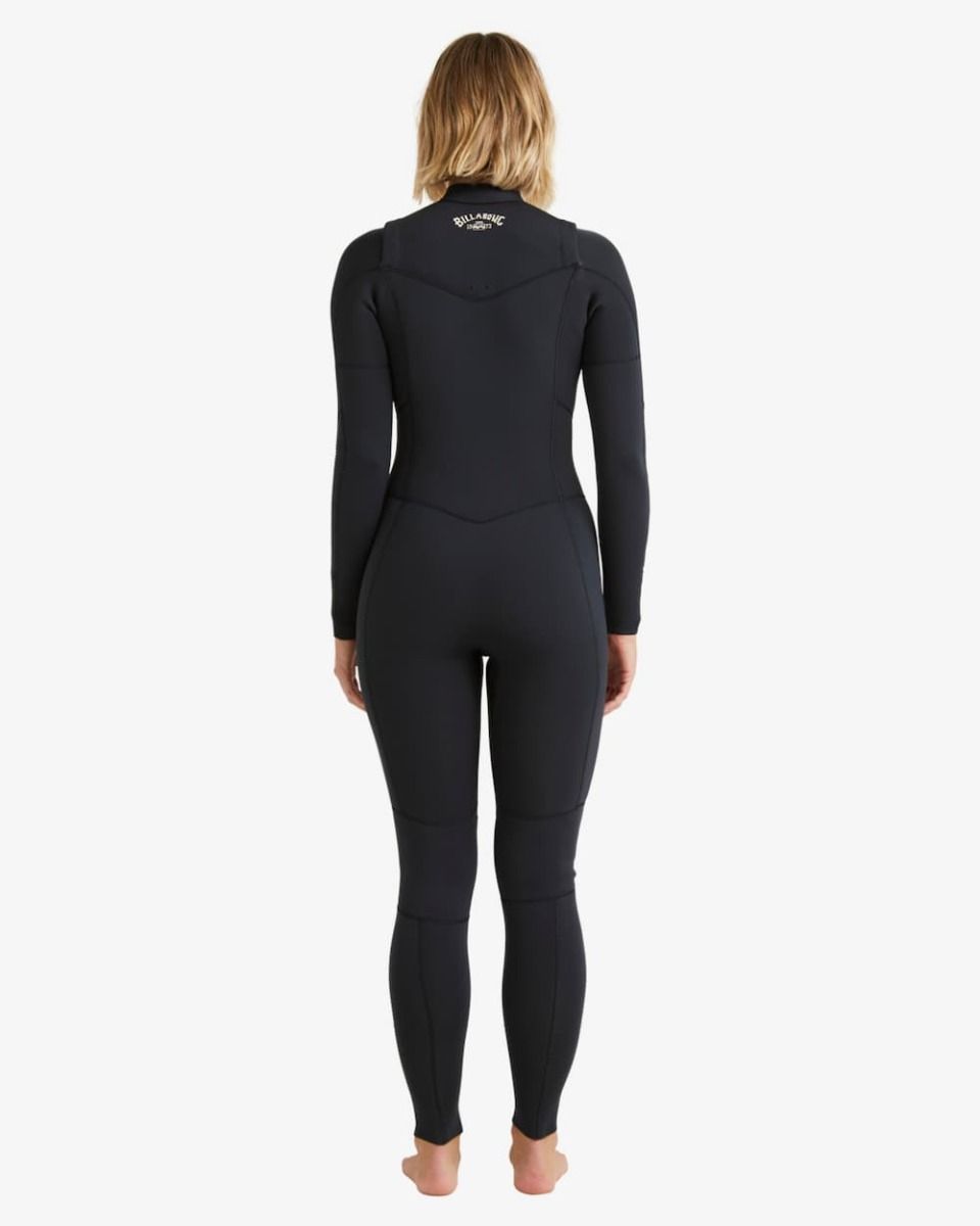 Traje de surf 3/2mm Billabong para mujer con caucho natural certificado FSC y forro Graphene, flexible y sin neopreno.