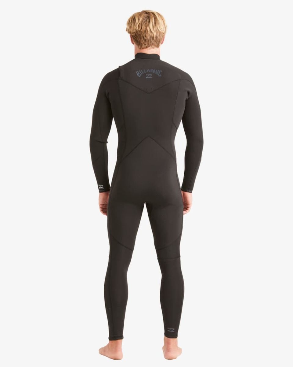 El nuevo traje de surf con cremallera en el pecho para hombre Absolute 4/3mm en negro (Black) de Billabong está confeccionado con tejido Pro Stretch más ligero, suave y 100% reciclado.