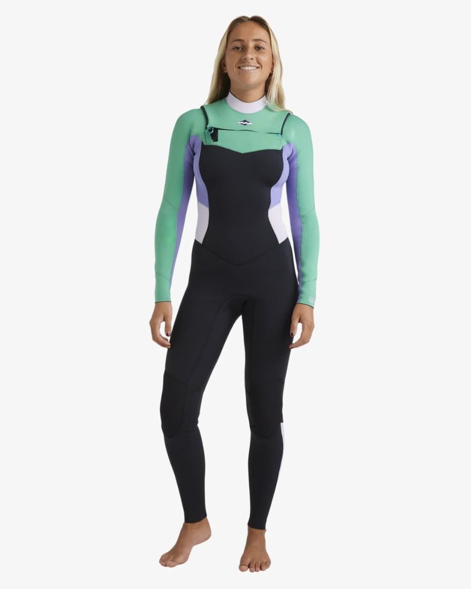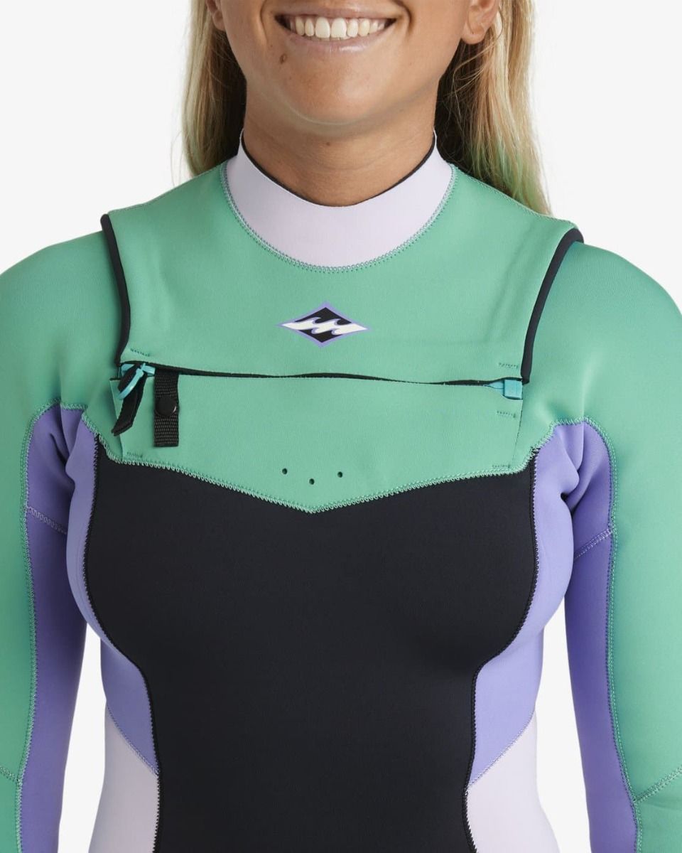 Traje de surf con cremallera en el pecho Billabong Salty Dayz Natural 4/3mm Aqua Haze para mujer