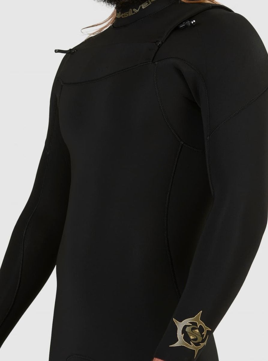 Este neopreno integral, perteneciente a la Colección Mongrel Tongue de Quiksilver en colaboración con el surfista australiano Mikey Wright, cuenta con grosor 3/2mm, entrada de acceso con cremallera en el pecho, tejido interior de polar térmico ligero WarmFlight® Eco Velvet, costuras triples encoladas, cosidas y con puntadas invisibles para un máximo de flexibilidad con mínima entrada de agua, laminado ecofriendly con cola Aqua Glue con base de agua, un bucle para llaves y detalles estampados inspirados en Mikey Wright.