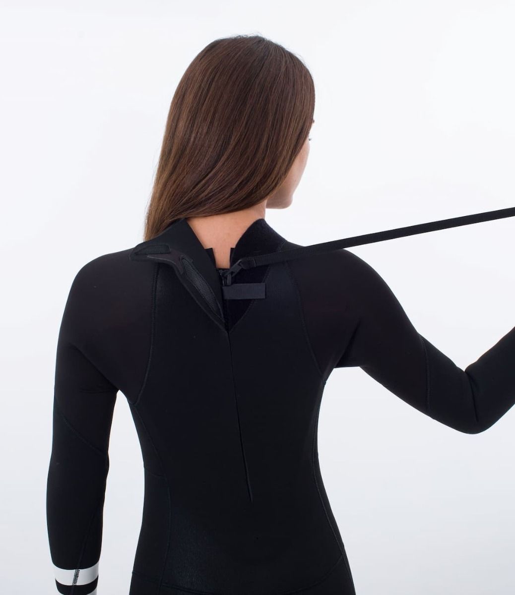 El traje de neopreno con cremallera en la espalda Hurley Woman Advant 4/3mm Fullsuit Back Zip Negro para mujer está indicado para aguas con temperaturas entre 11-13°C.