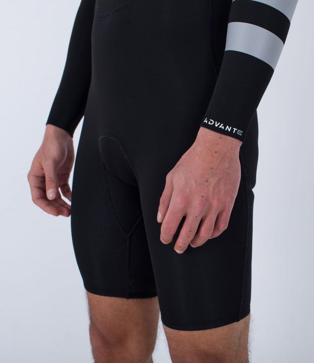 El traje de surf de primavera con manga larga para hombre Advant 2/2mm Chest Zip LS Springsuit negro está indicado para aguas con temperaturas de entre 17-22°C.