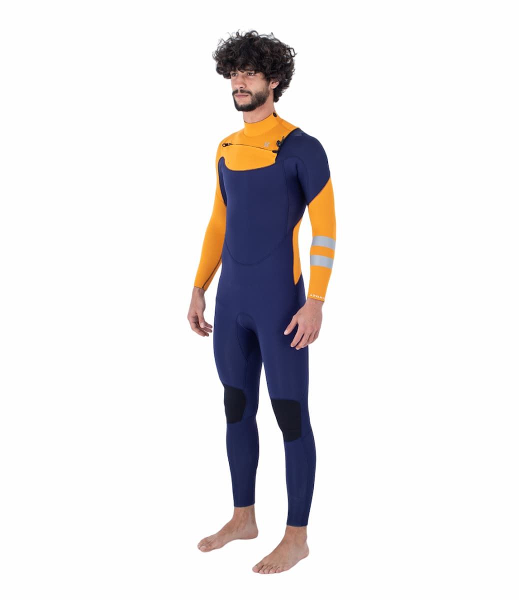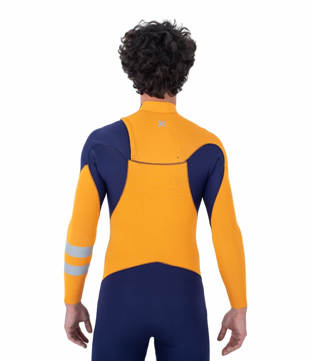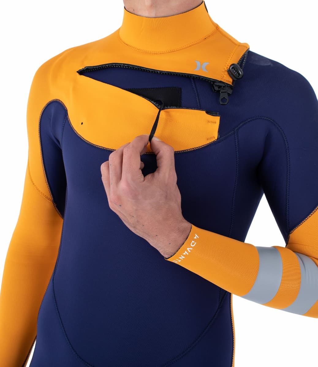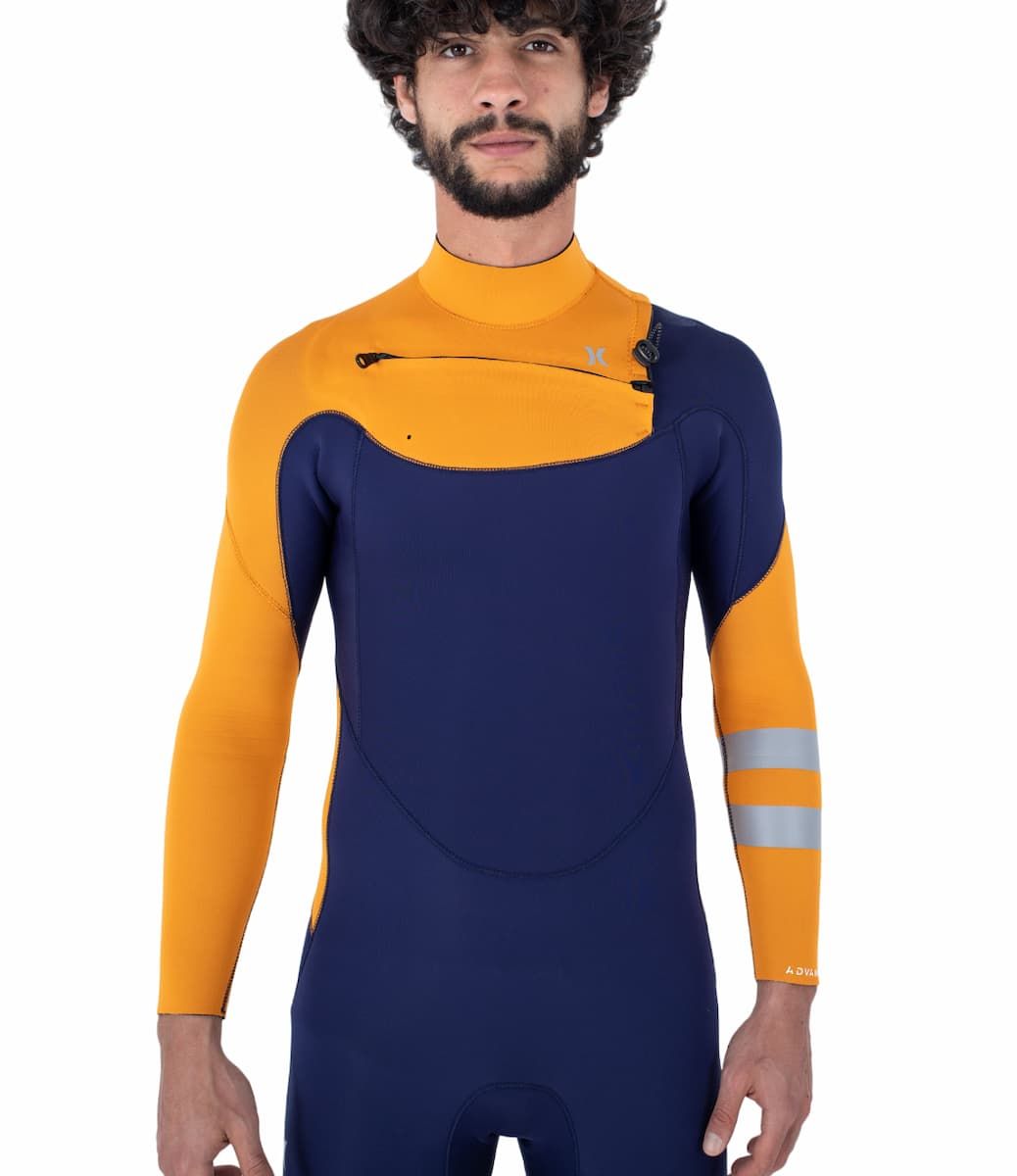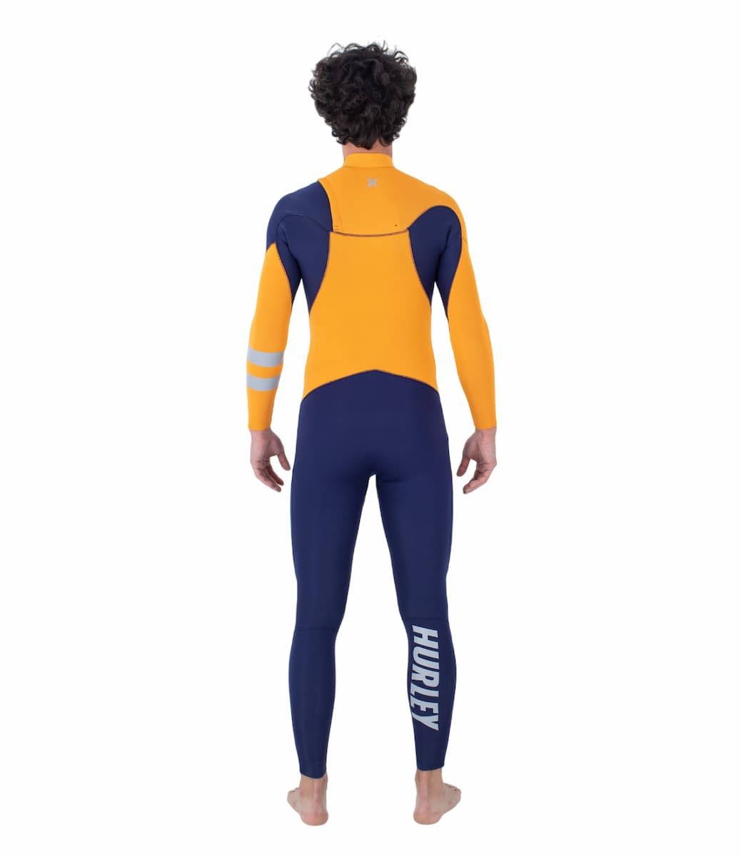 Traje de Neopreno con cremallera en el pecho Hurley Advant 4/3mm en color azul marino y naranja para hombre